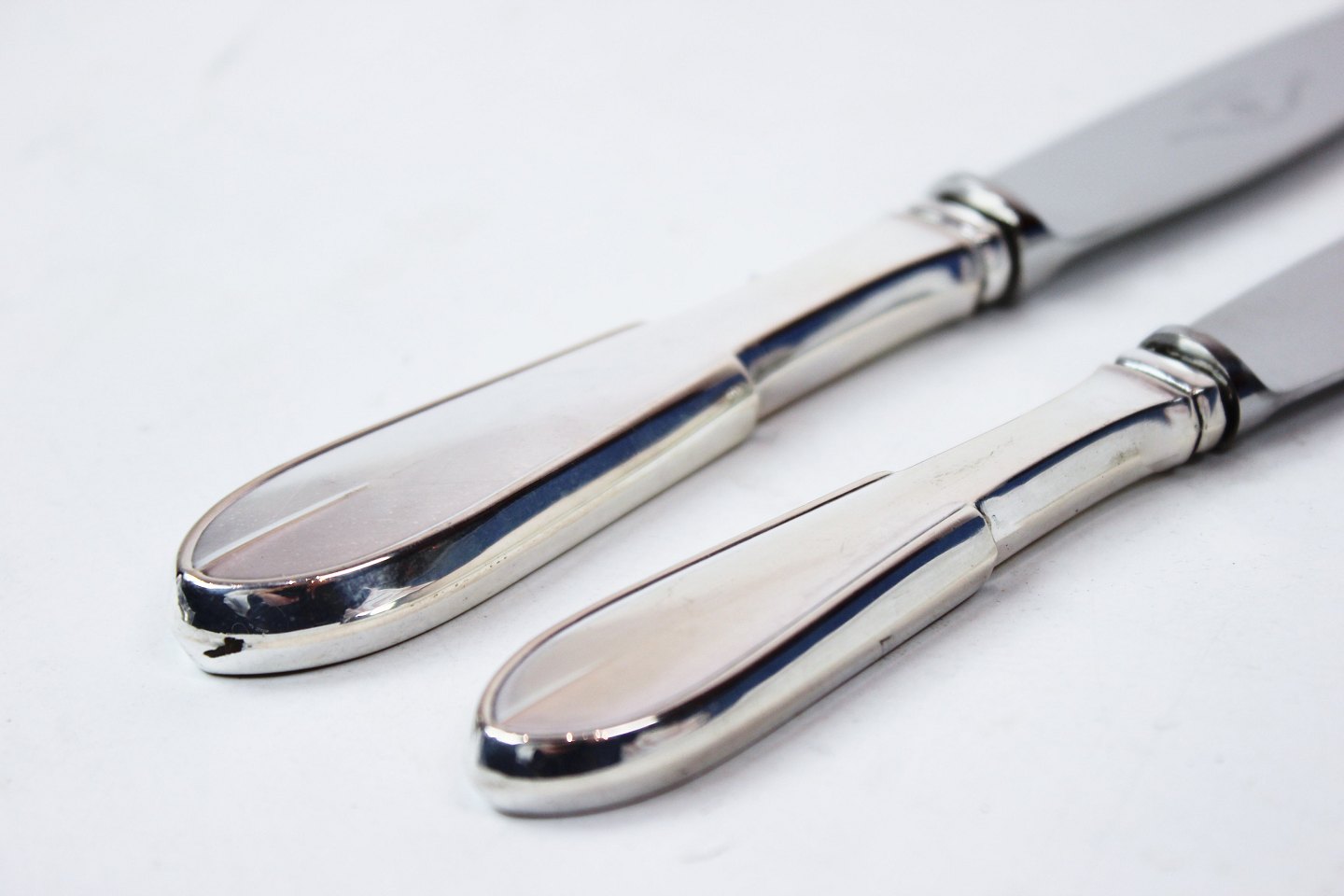 View the price in the text descriptionDinner knife and lunch knife in heirloom silver No. 1 by Hans Hansen. Ask for quantity in stock.