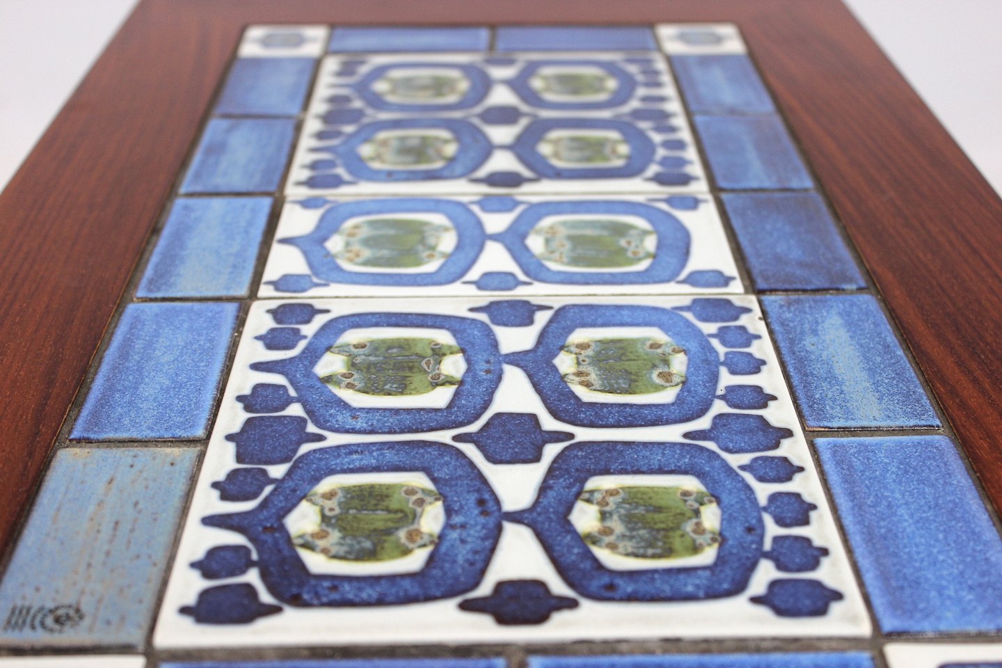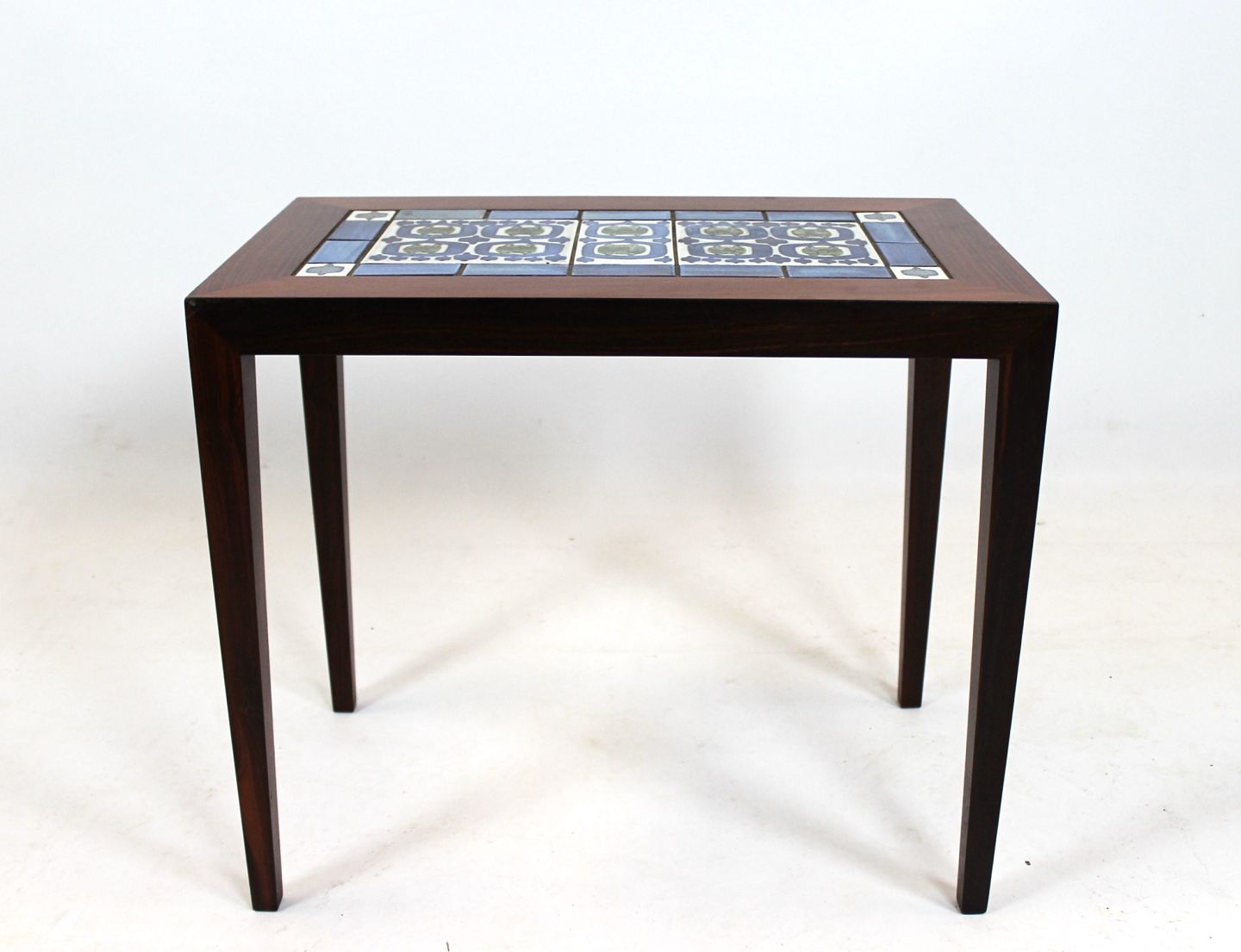 Side table of rosewood and dark blue tiles from Royal Copenhagen, designed by Severin Hansen for Haslev Furniture Factory from the 1960s.
