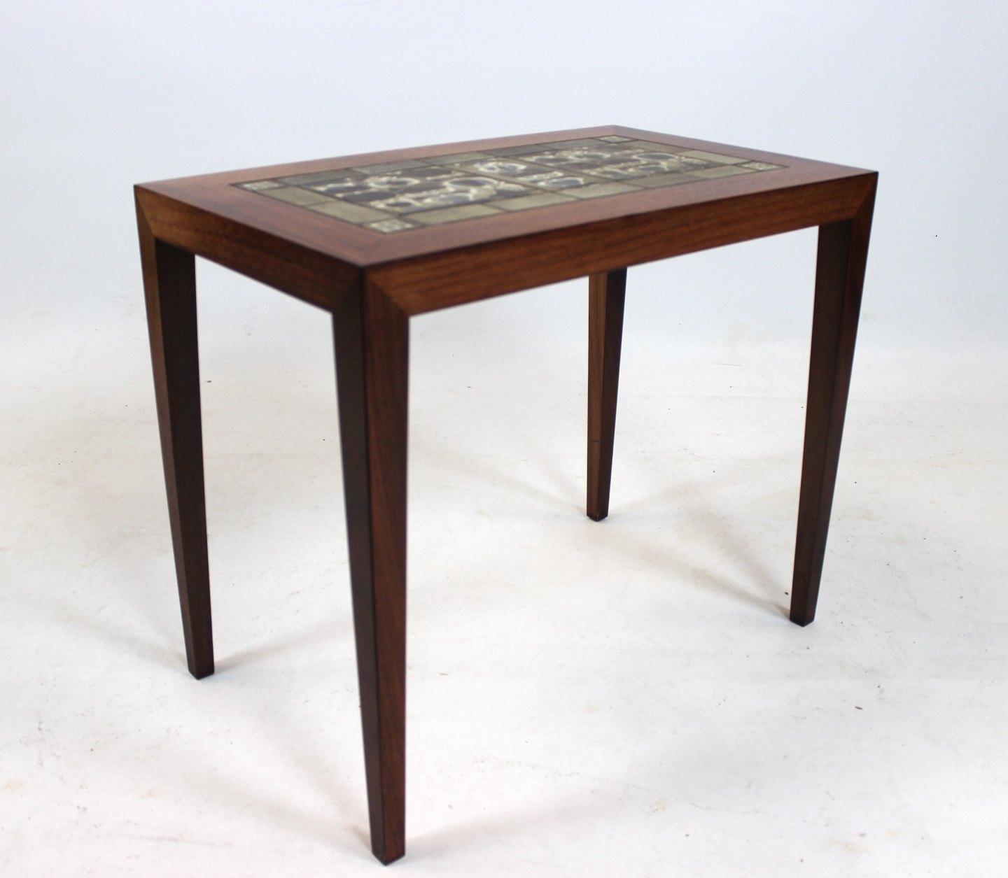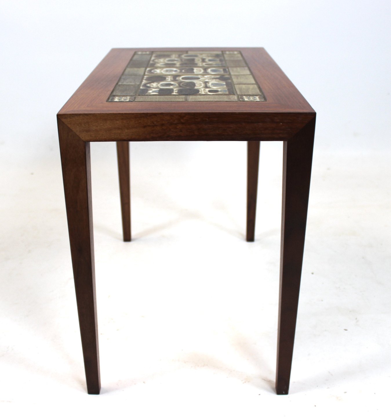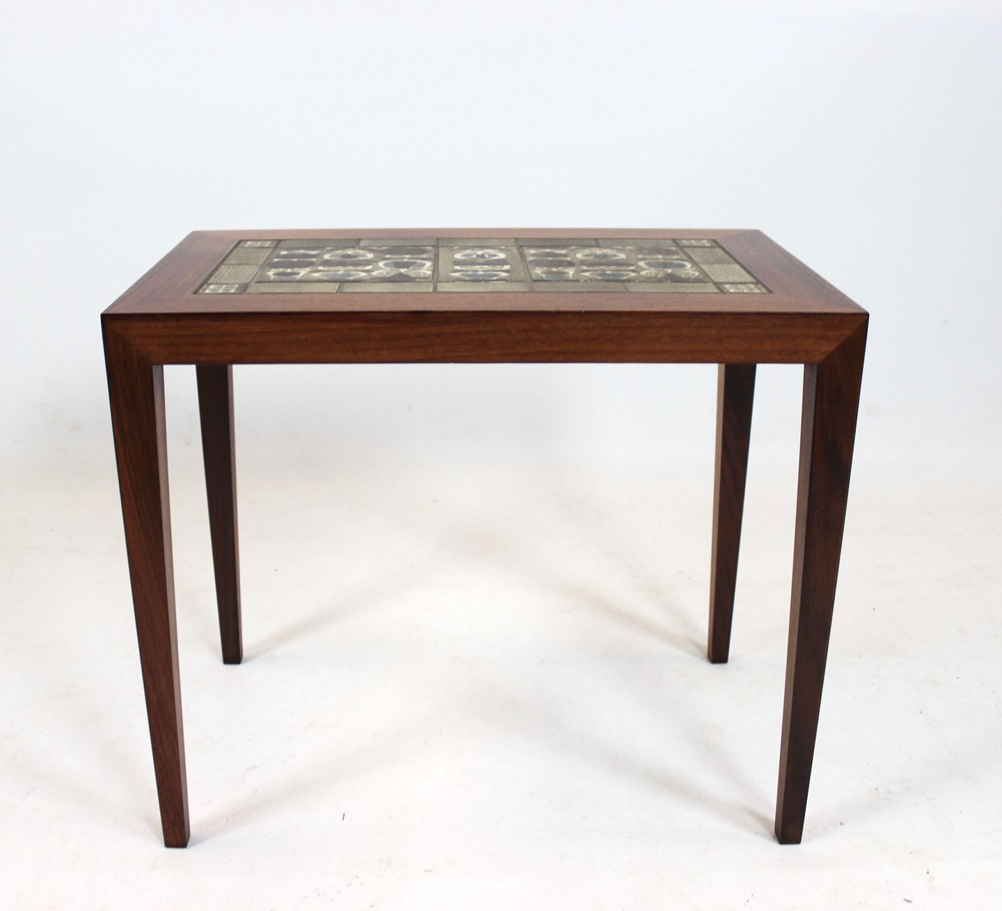 Sidebord i palisander med kgl. brune kakler designet af Severin Hansen for Haslev Møbelfabrik fra 1960erne. Bordet er i flot brugt stand.