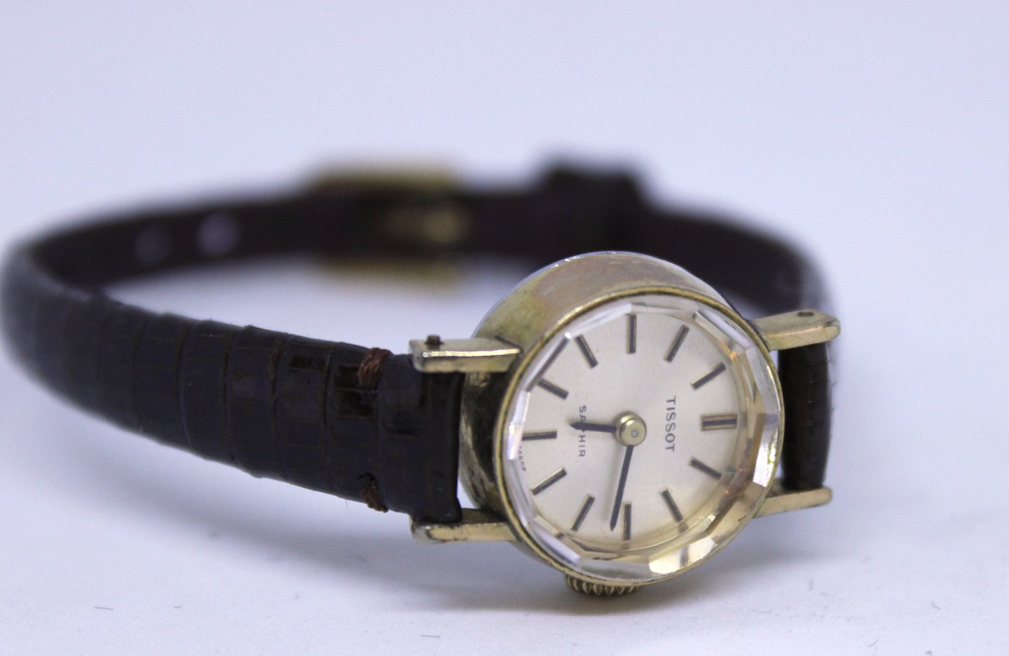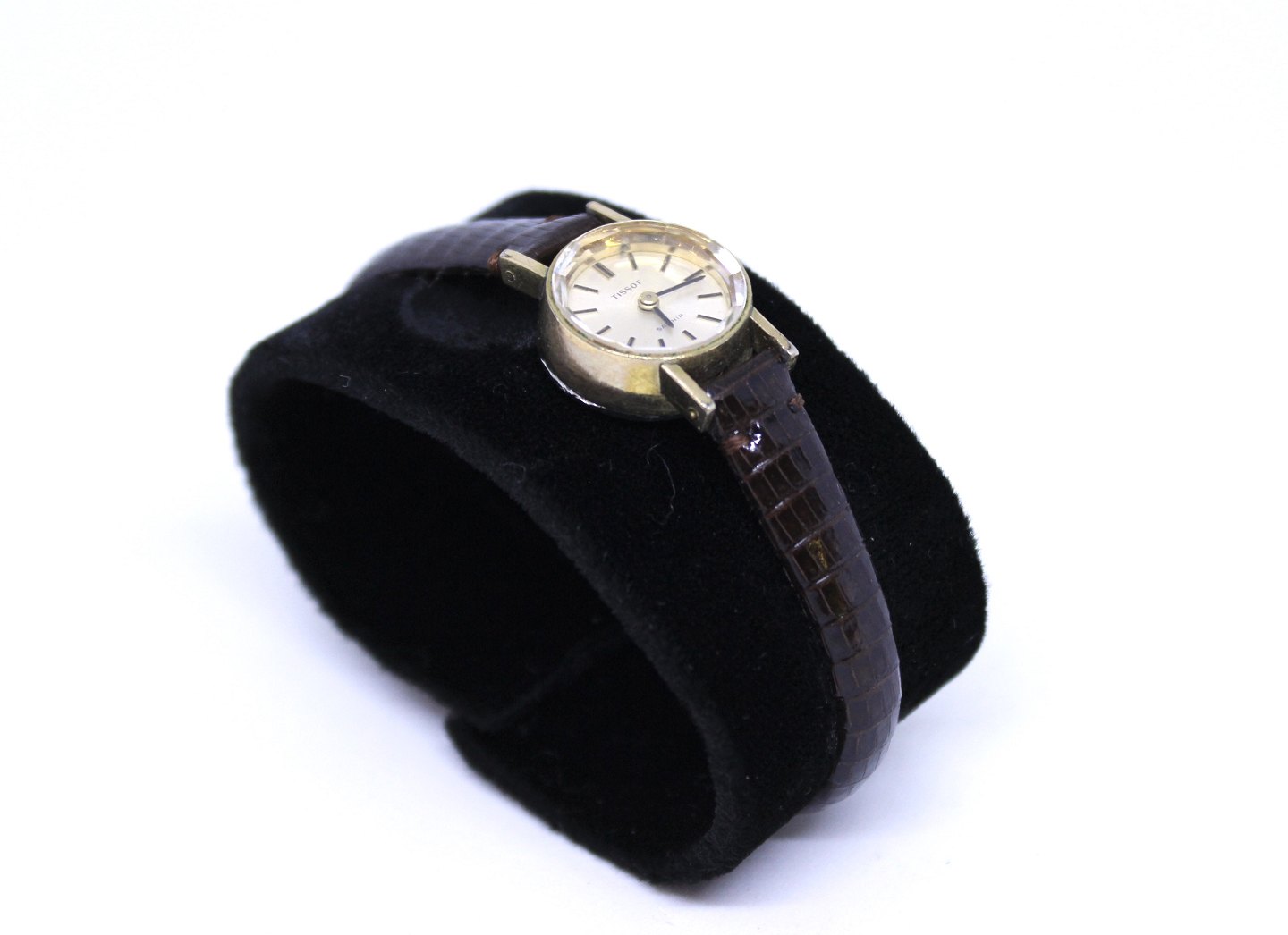 Tissot Saphir gilded women's wrist watch swiss made with crocodile leather strap. The watch is in great vintage condition.