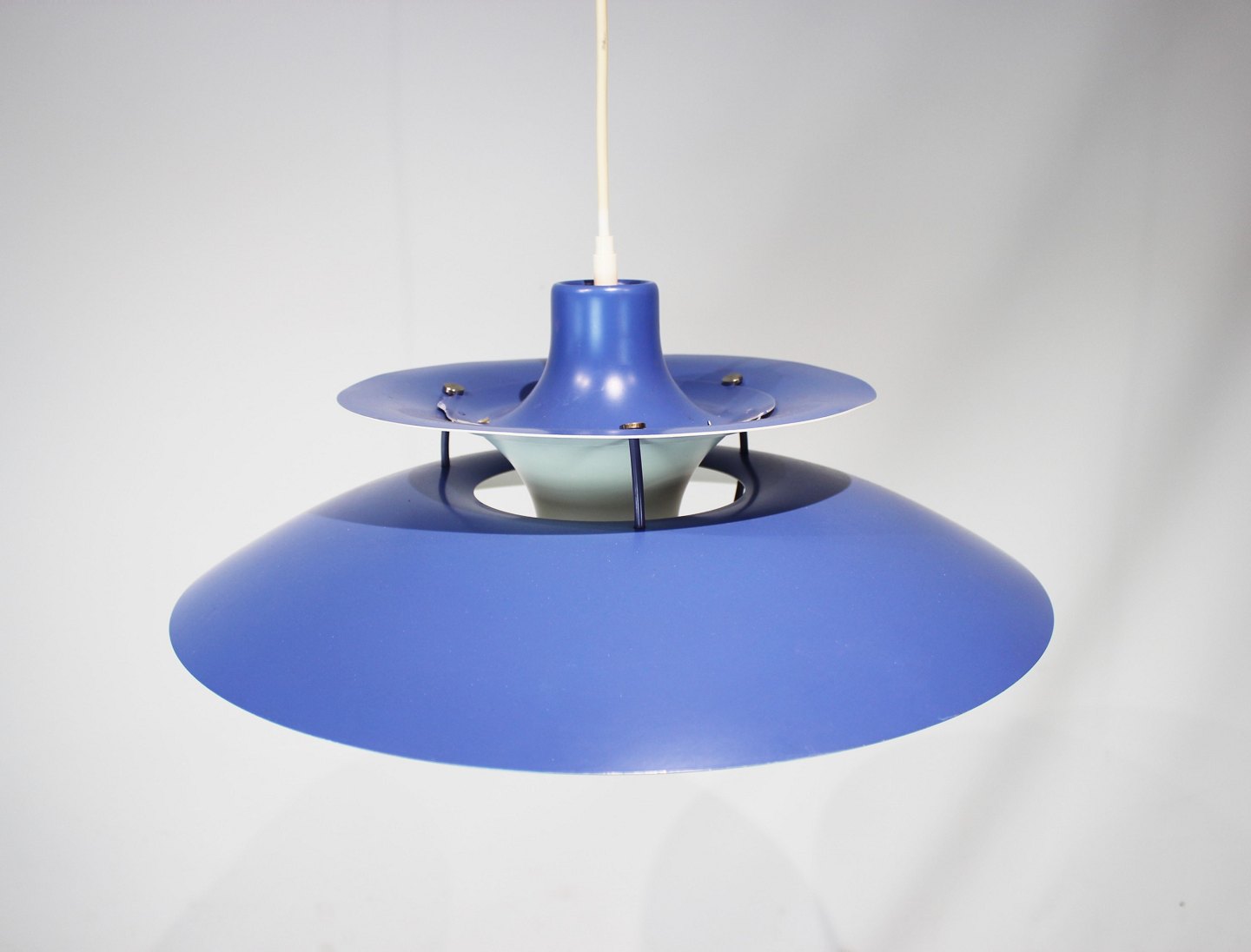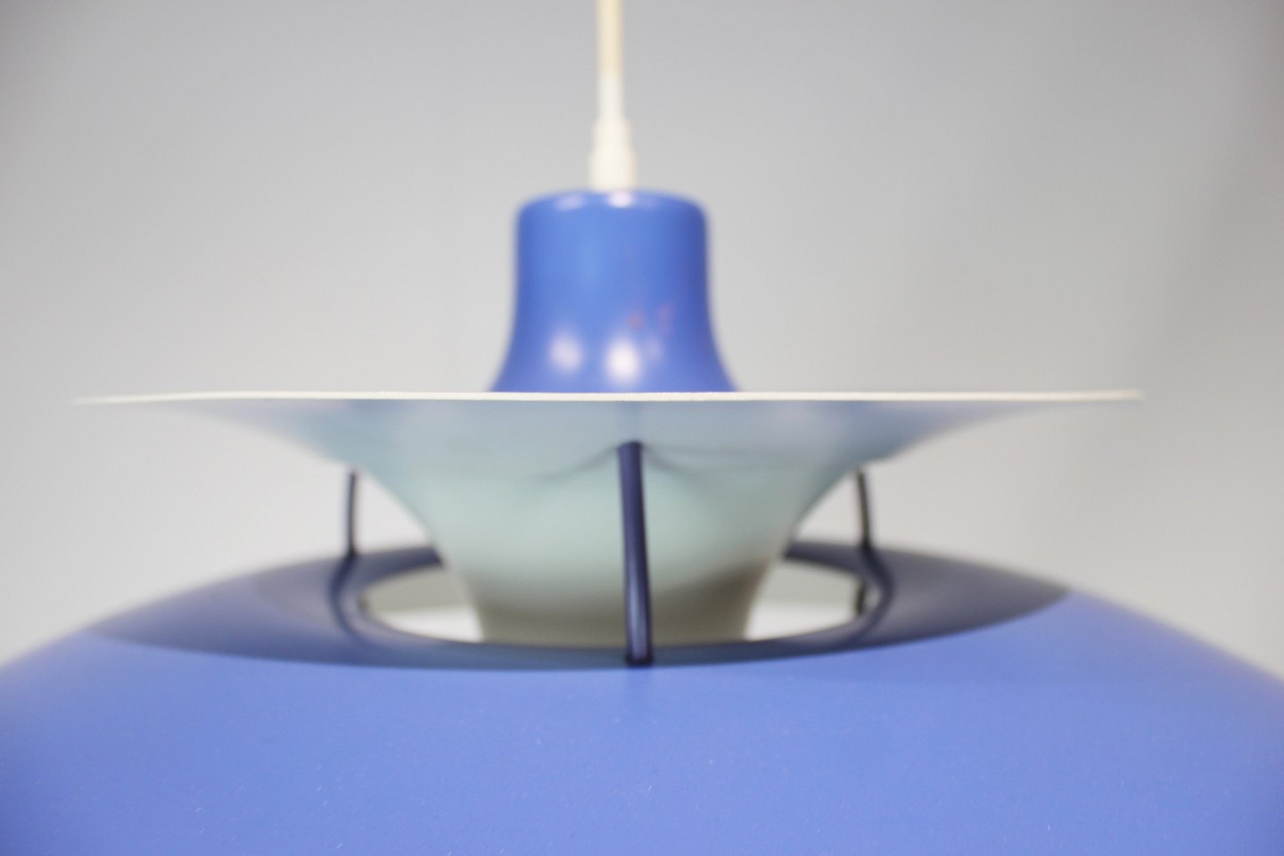SoldPH5 pendant designed by Poul Henningsen in 1958 and manufactured by Louis Poulsen. The pendant has blue lacquered metal Shades.
