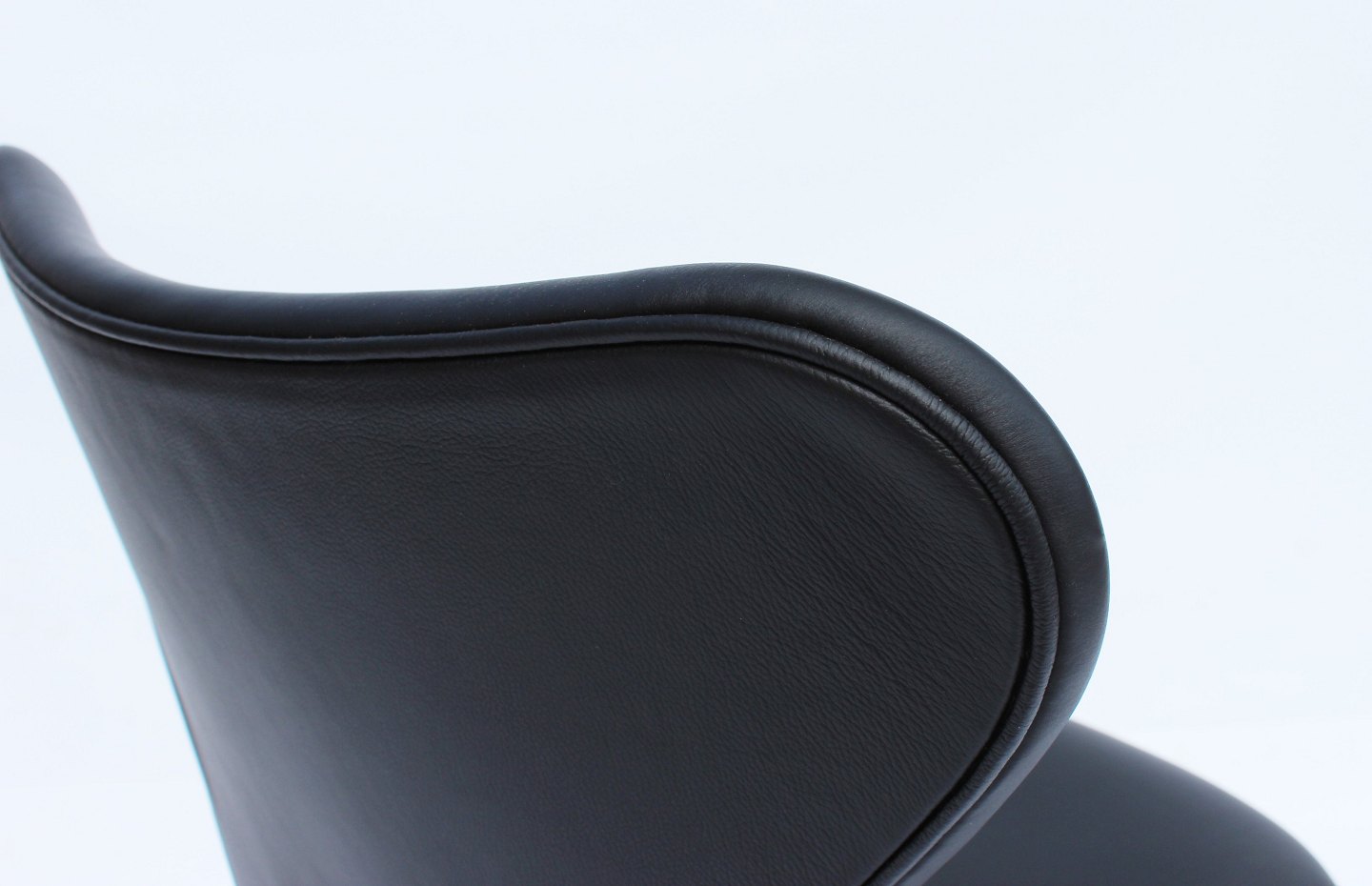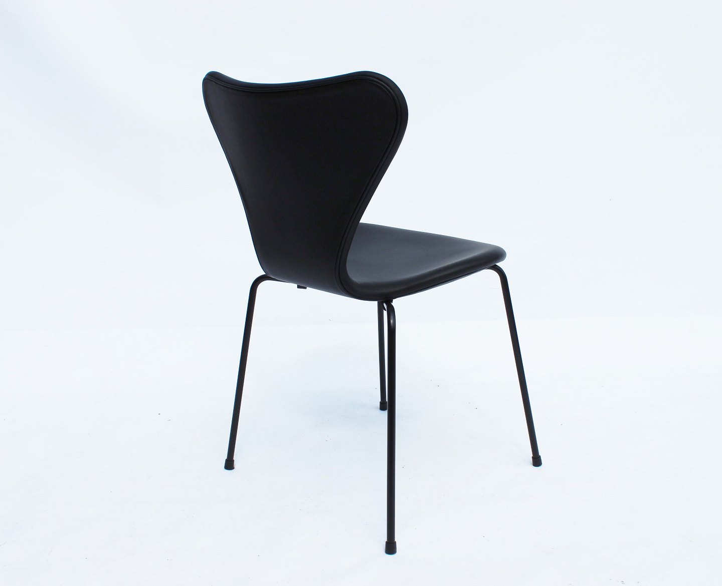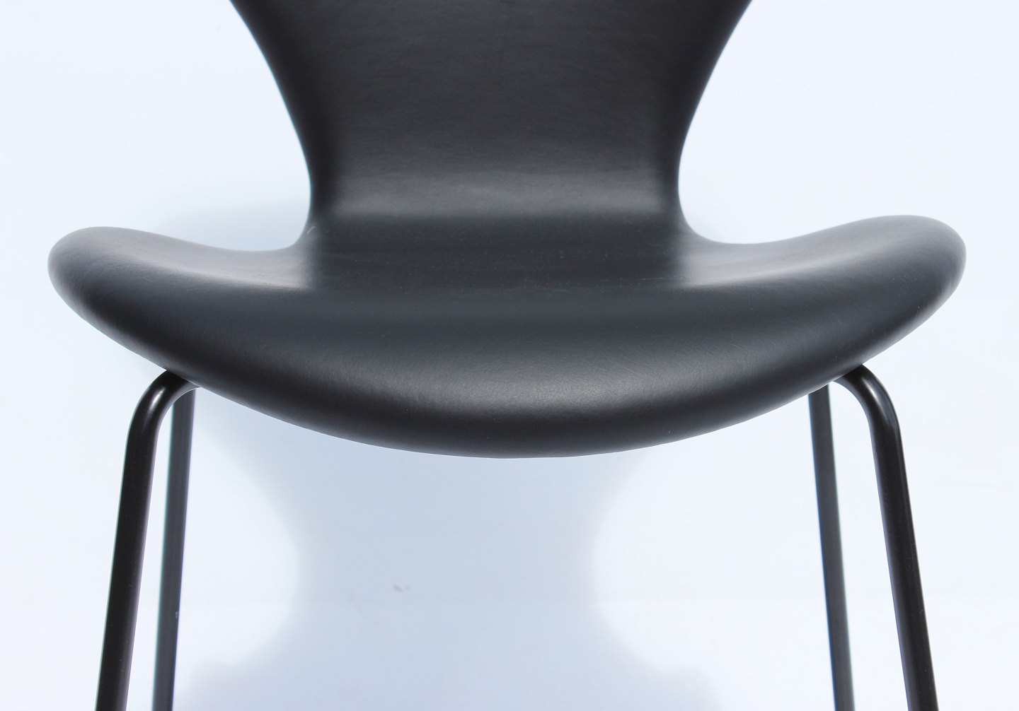 The chairs were created in 2016 as a special model that incorporates the classic elegance and timeless design elements that Arne Jacobsen is known for. The black leather upholstery adds a sophisticated atmosphere to the seat, while the black frame gives a modern and stylish look.
