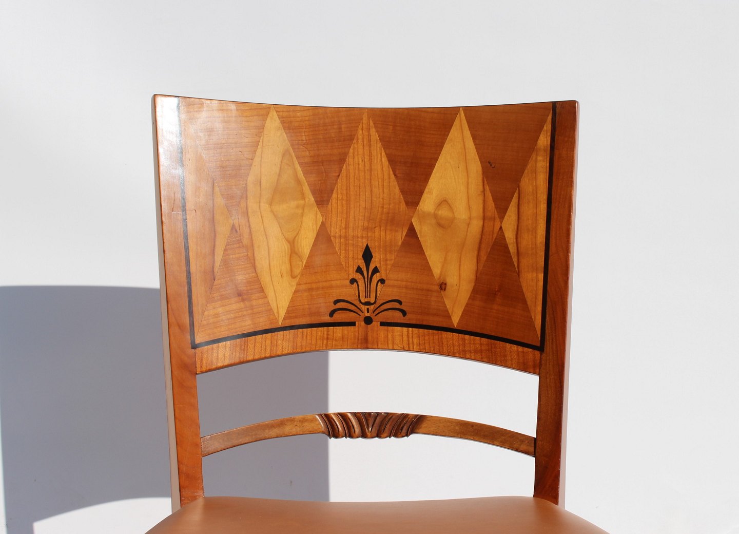 Sæt af Seks Snedkermester Spisestuestole - Forskellige Typer Træ - Cognac farvet elegance læder - 1950