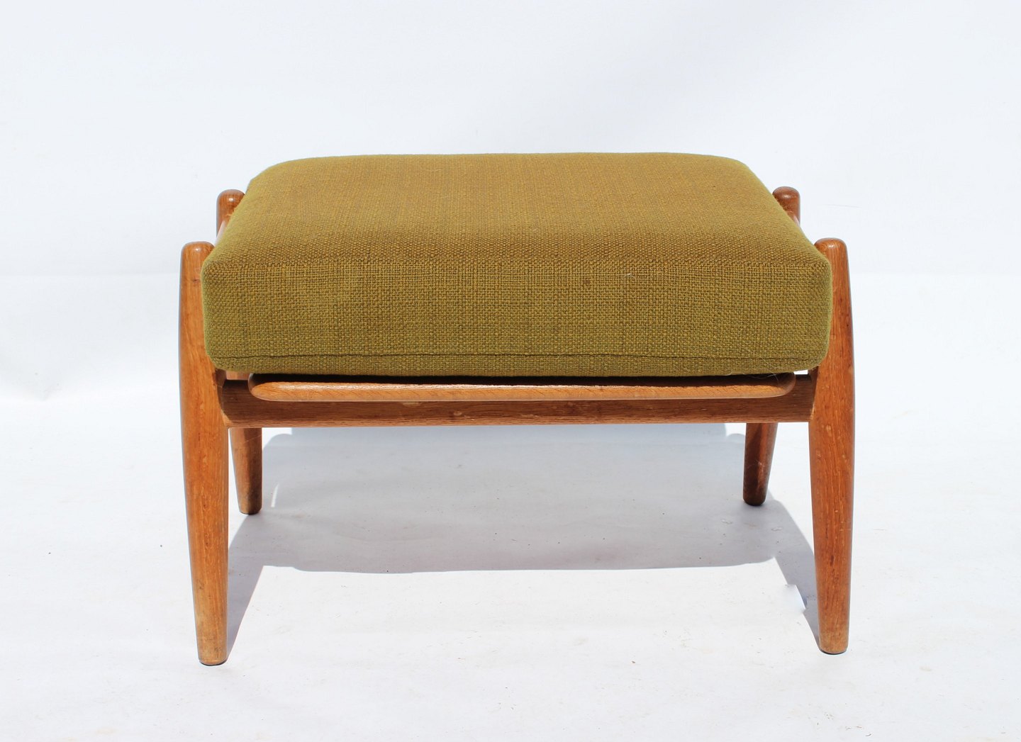 Stool for "The Cigar", model GE240, of oak and dark green wool, by Hans J. Wegner and Getama from the 1960s.