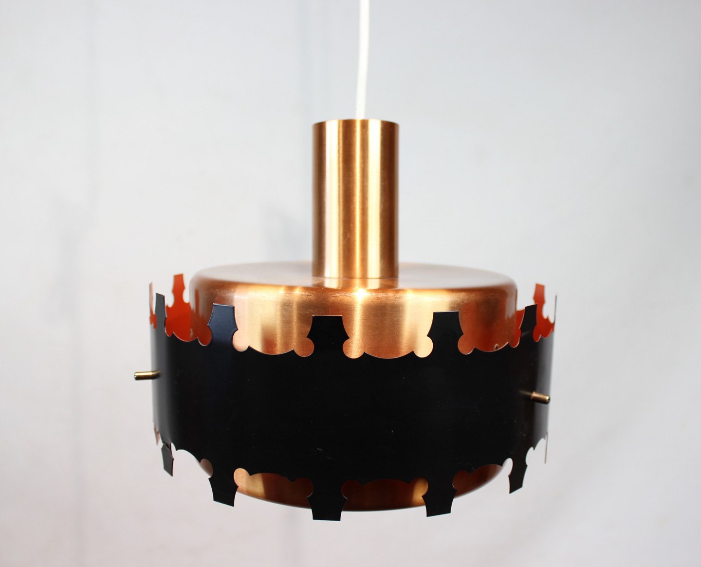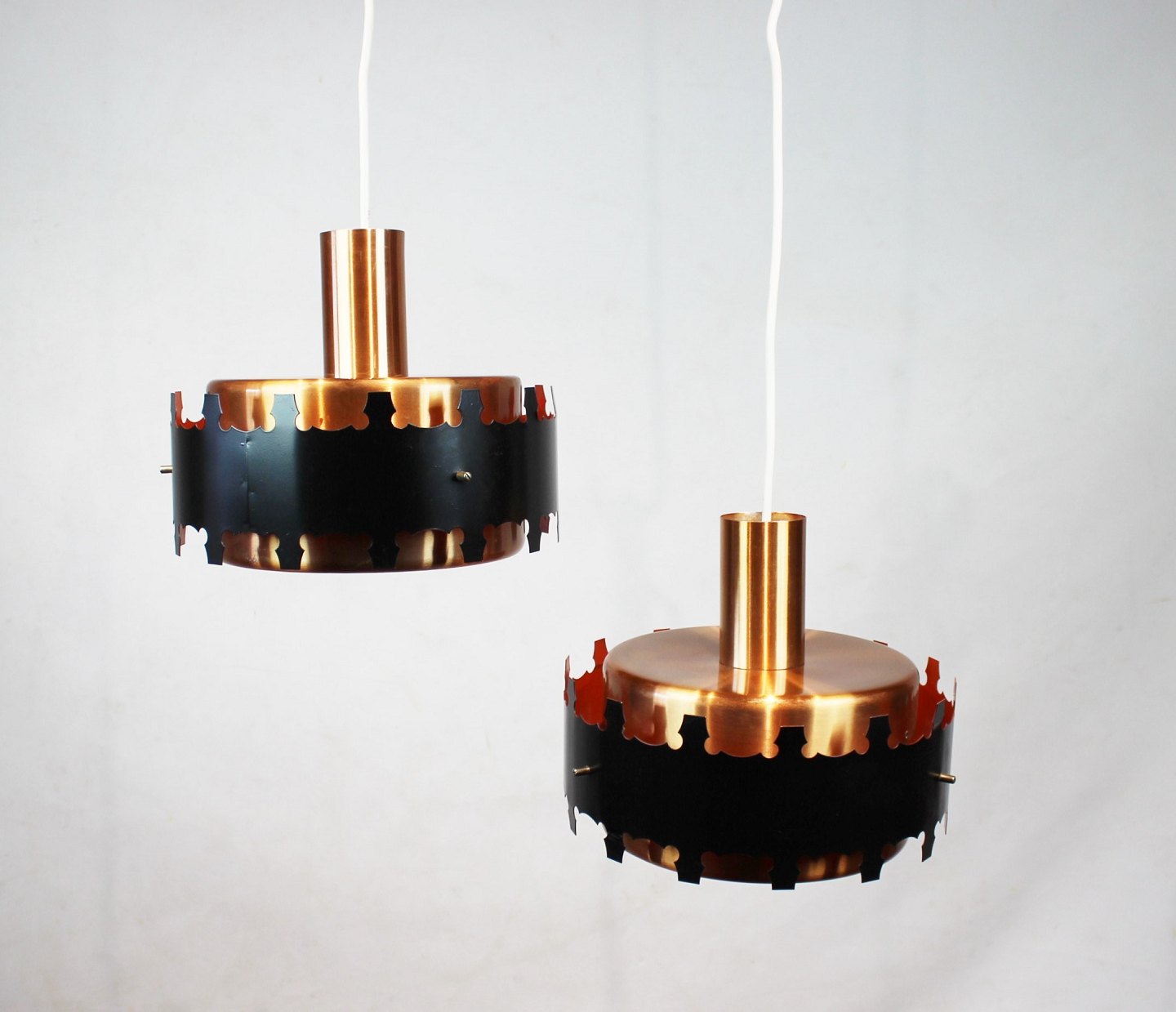 A pair of pendants in copper and black metal of danish design from the 1970s. The lamps are in great vintage condition.