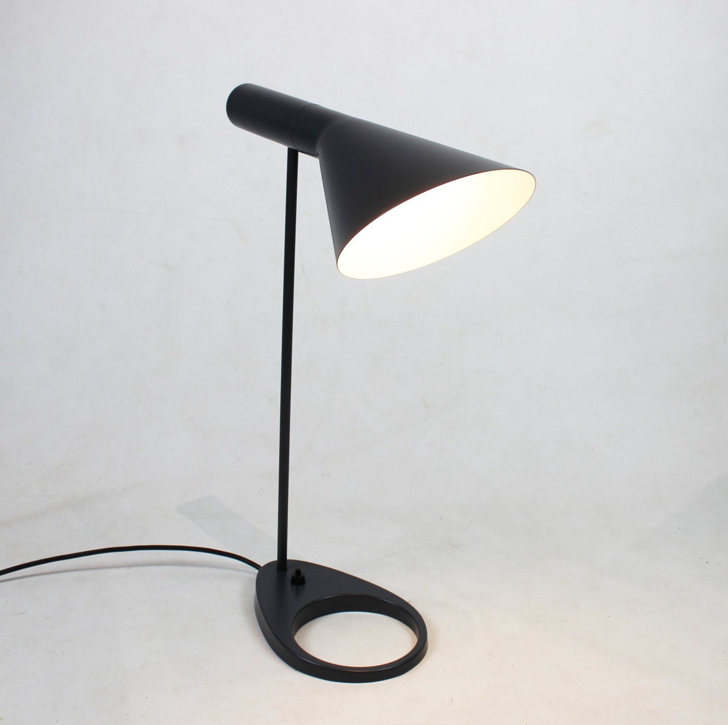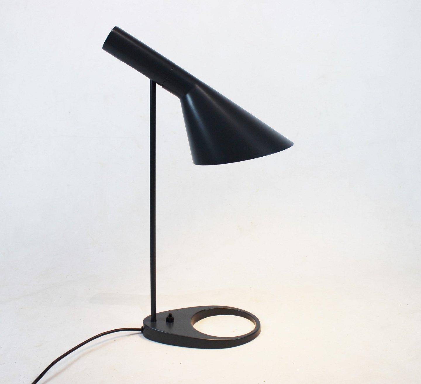 SoldBlack table lamp designed by Arne Jacobsen in 1957 and manufactured by Louis Poulsen. The lamp is a show model and is therefore in great used condition.