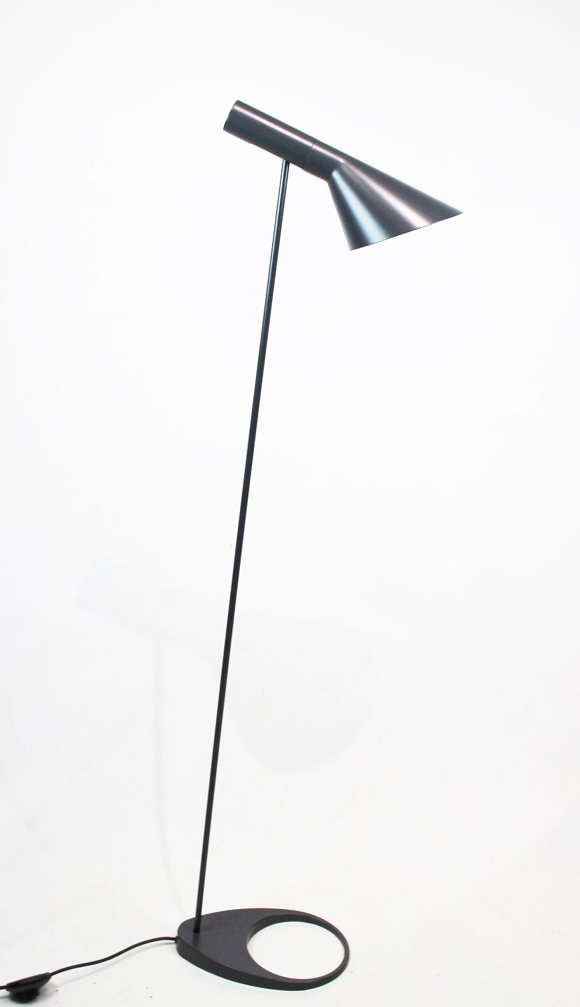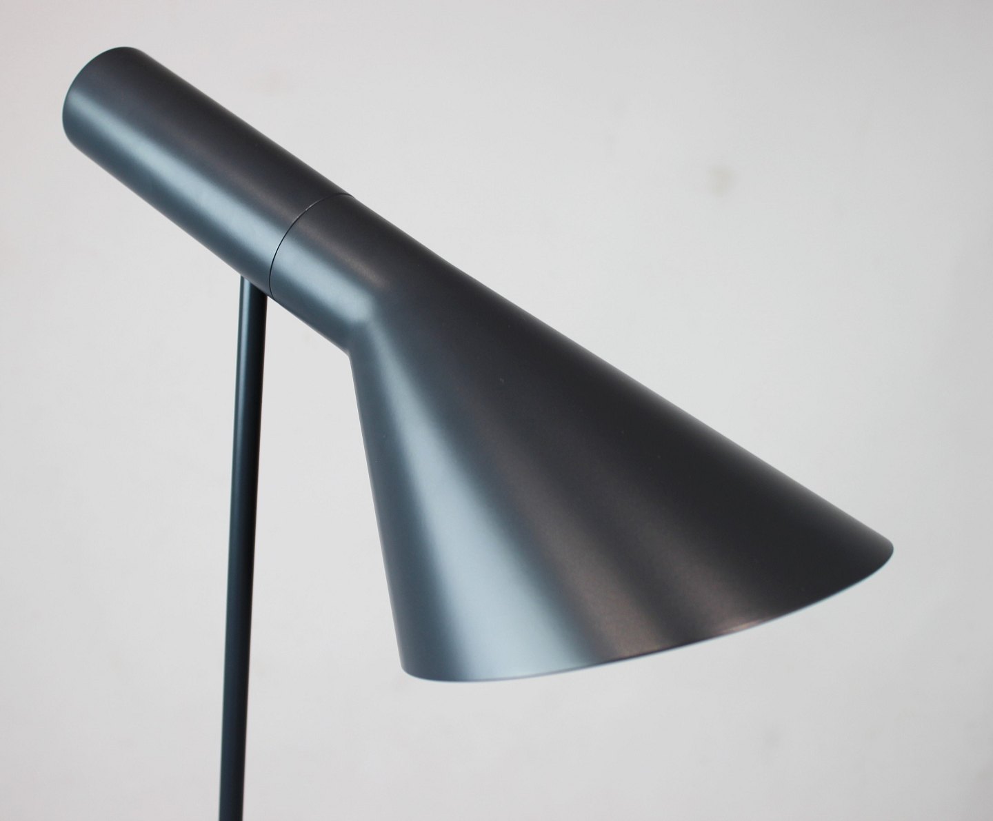 SoldDark grey floor lamp desgined by Arne Jacobsen in 1957 and manufactured by Louis Poulsen. The lamp is a show model and is therefore in great used condition.