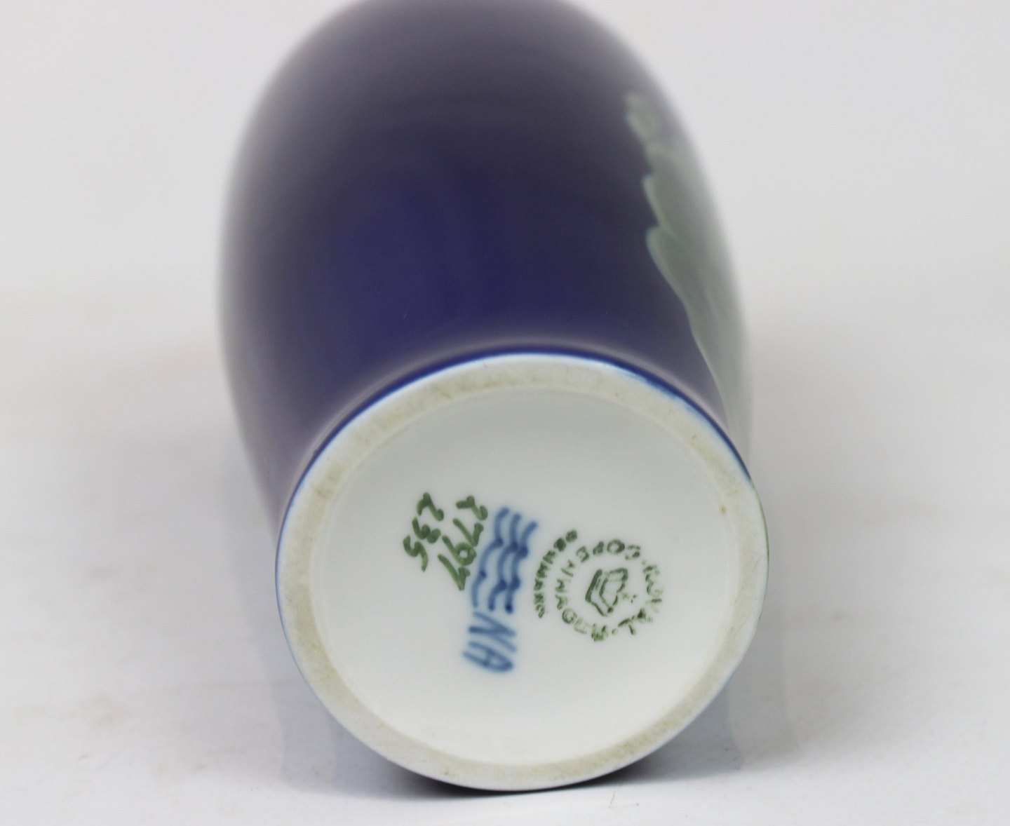 SoldDark blue vase decorated with flowers, no.: 2797 235, by Royal Copenhagen.