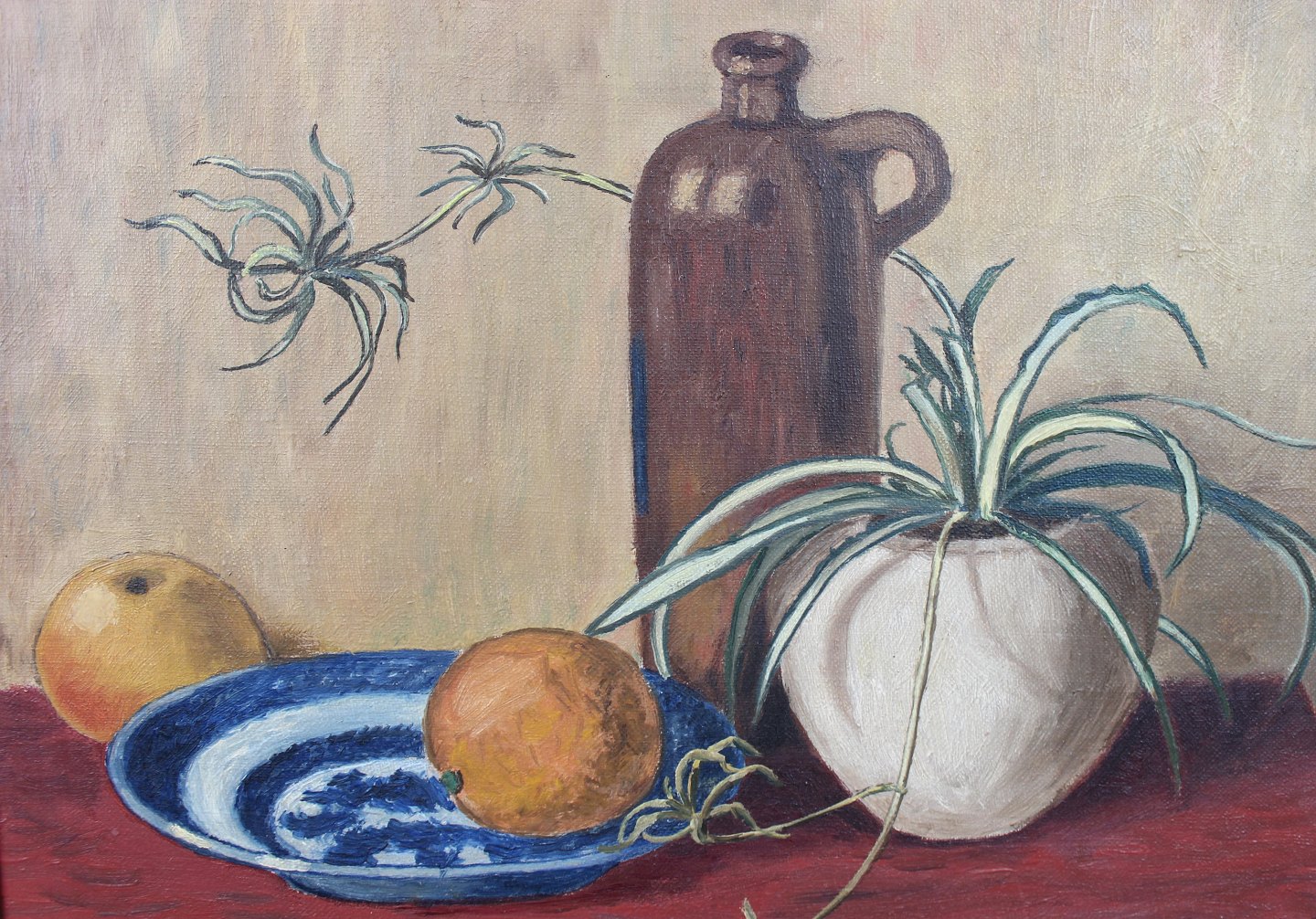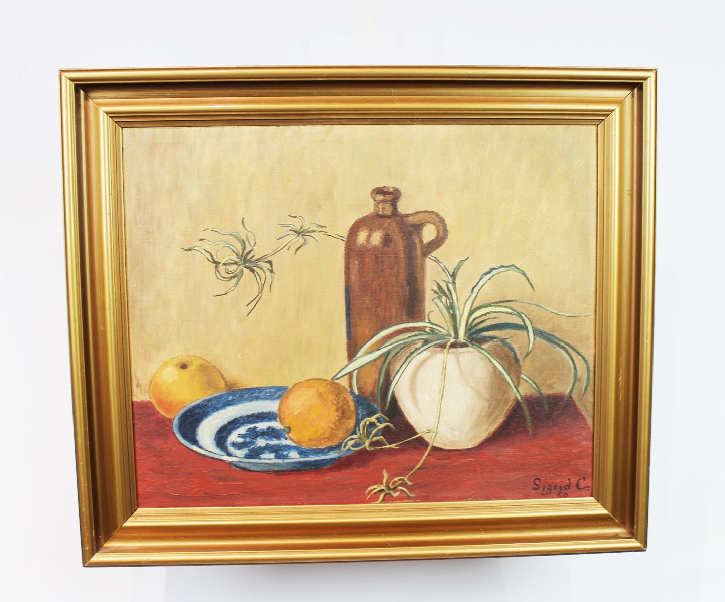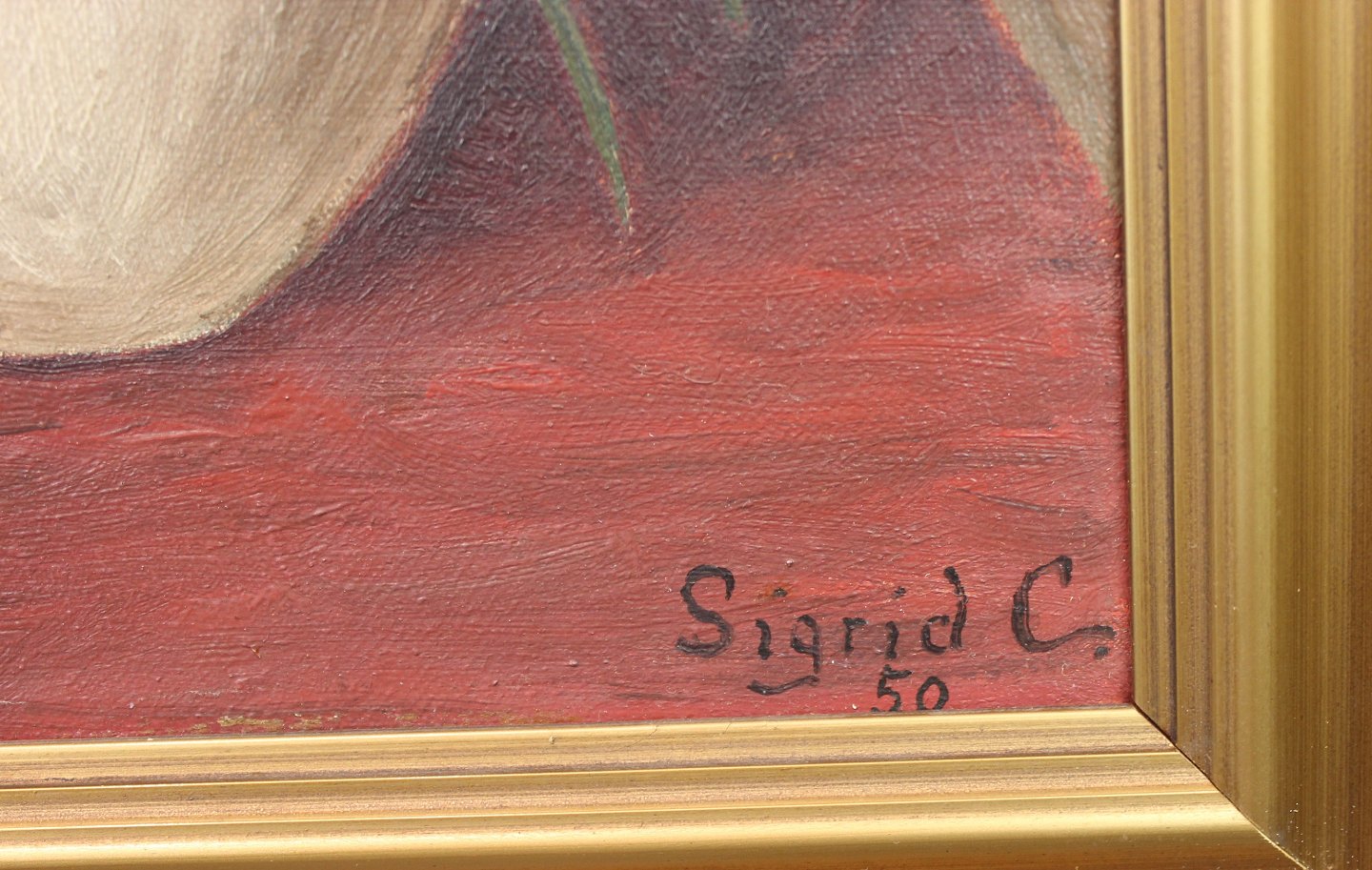 Oliemaleri i varme farver signeret Sigrid C. i 1950.