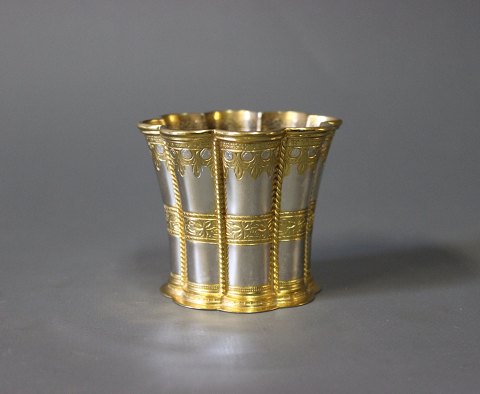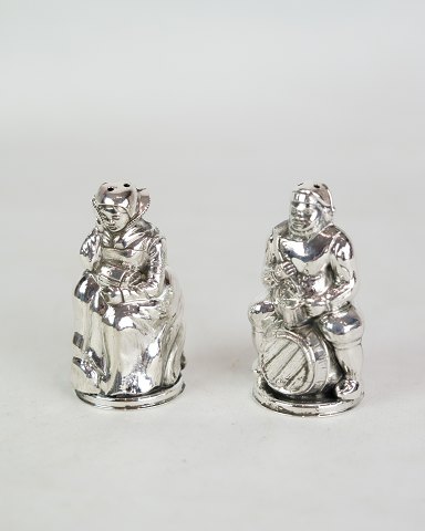Sukkerstrødåse på tre fødder af tretårnet sølv.