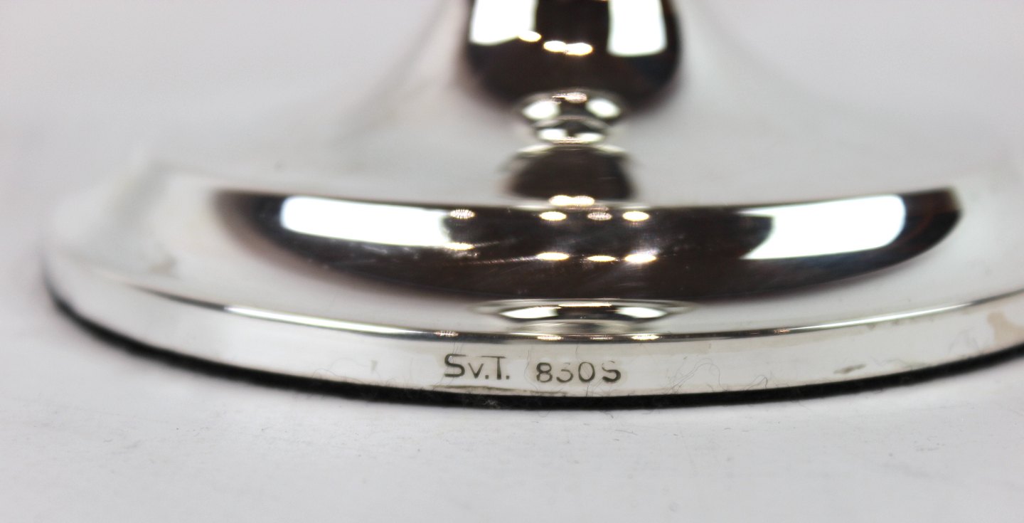 Lysestage af 830 sølv stemplet SV.T.