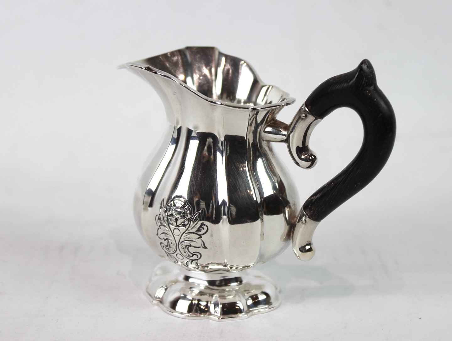 Set of coffee service decorated with engravings of hallmarked silver and ebony.