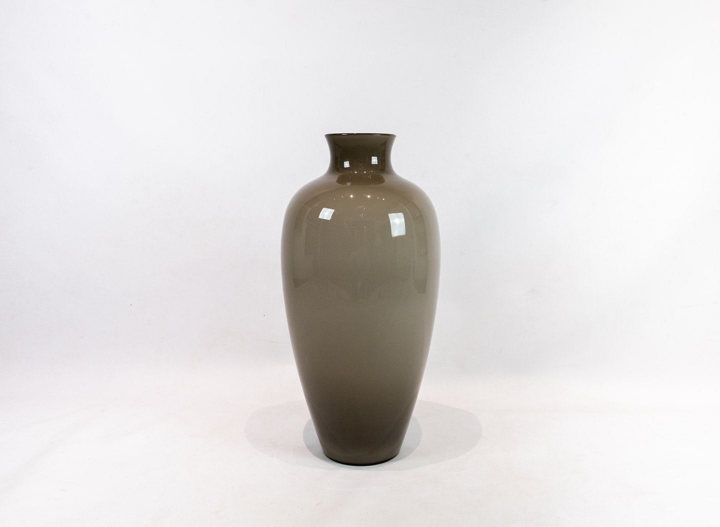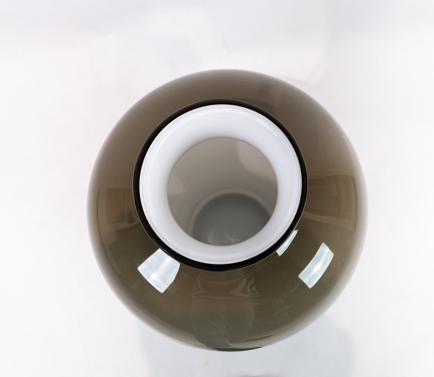 Floor vase of brown glass and of white opaline glass on the inside by Holmegaard.