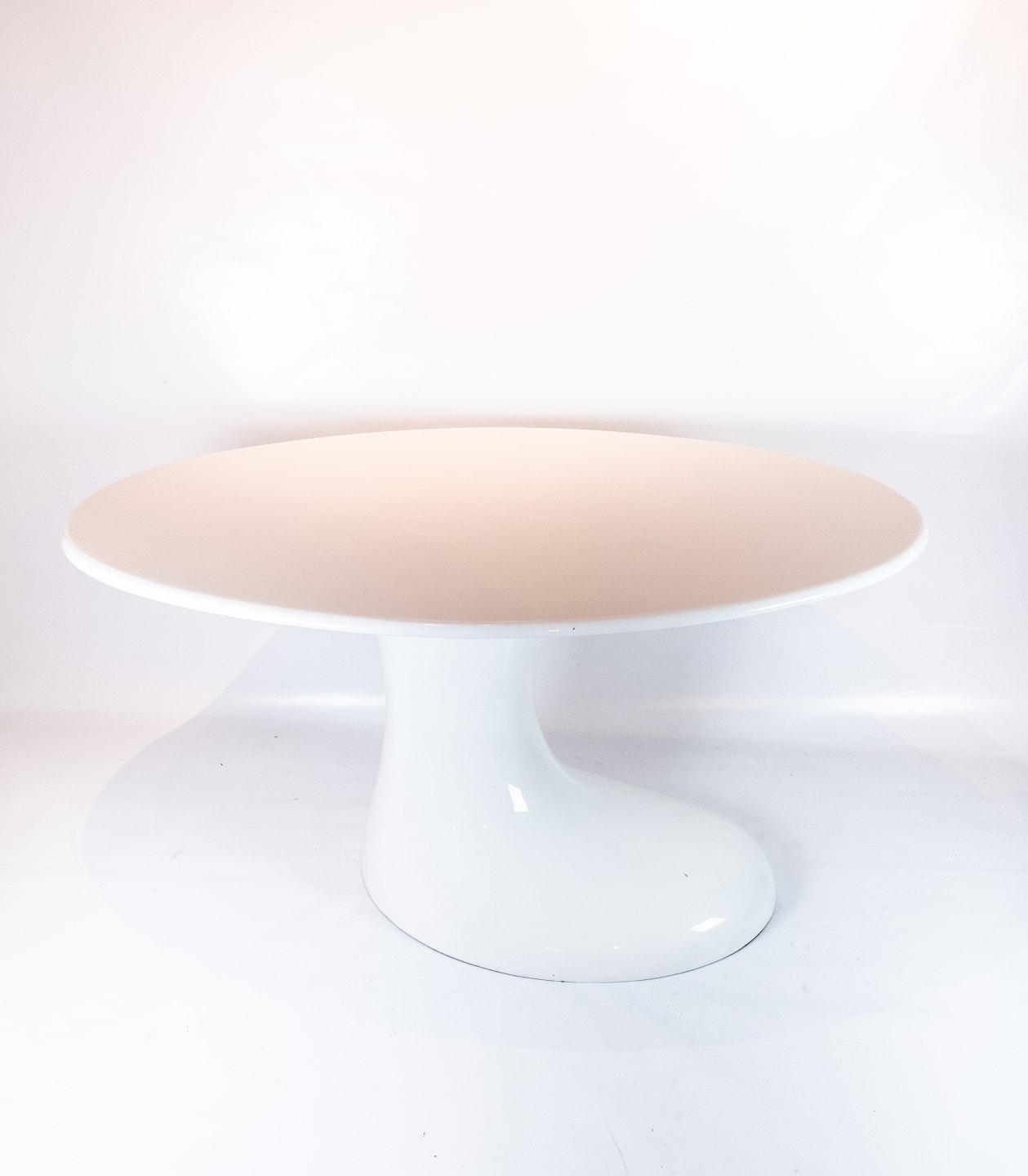 Spisebord i hvid plast af dansk design fra 1970erne. Bordet er i flot brugt stand.