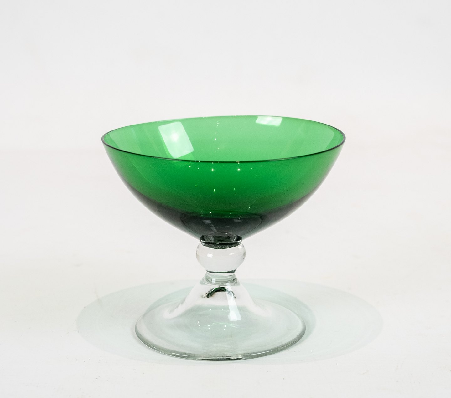 Old French cocktail glass in different strong colors from the 1930s. Ask for number in stock.