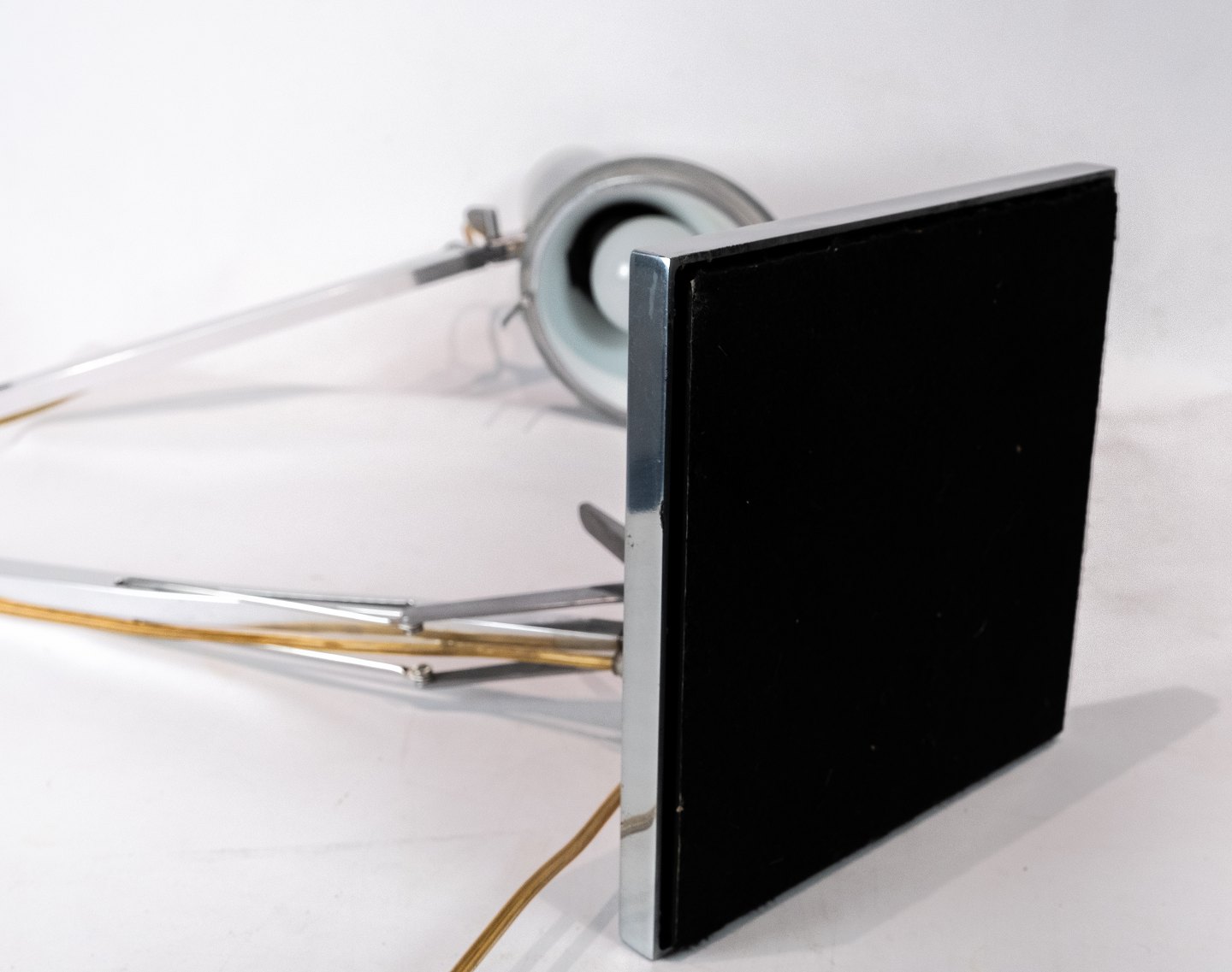 Bordlampe af rustfrit stål og af italiensk design, af Flos. Lampen er i flot brugt stand og vi har 2 stk. på lager.