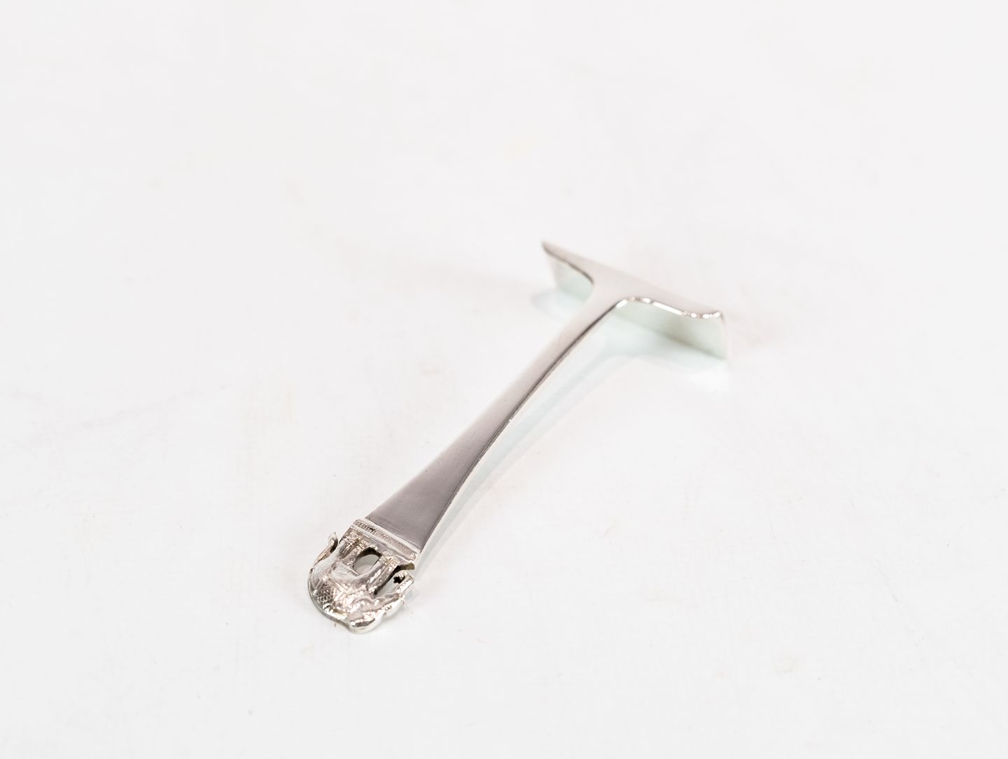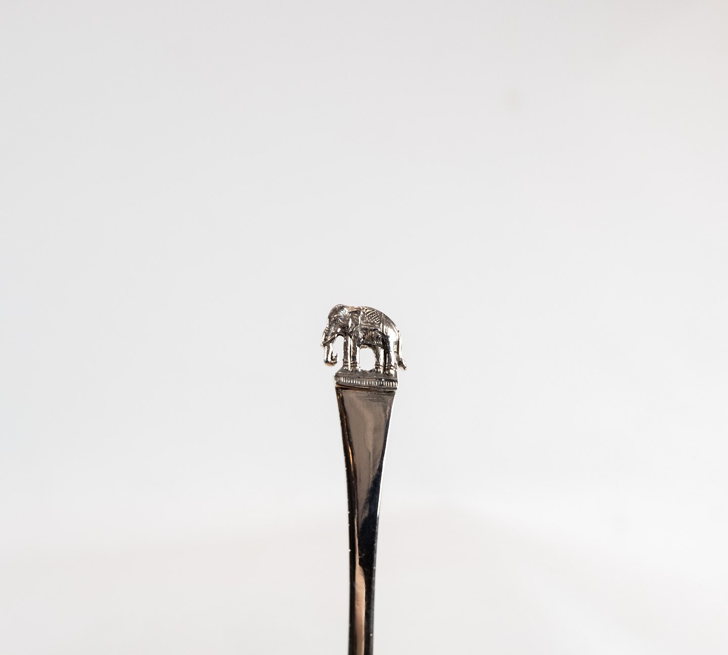 Pusher for food decorated with elephant and of hallmarked silver.