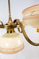 Ceiling pendant of brass and shades of opaline glass from the 1940s.