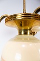 Ceiling pendant of brass and shades of opaline glass from the 1940s. The lamp is in great vintage condition.