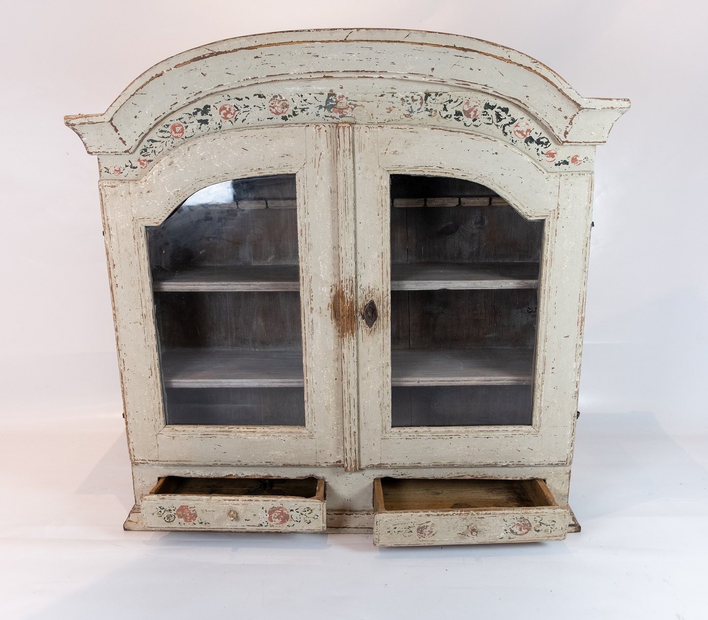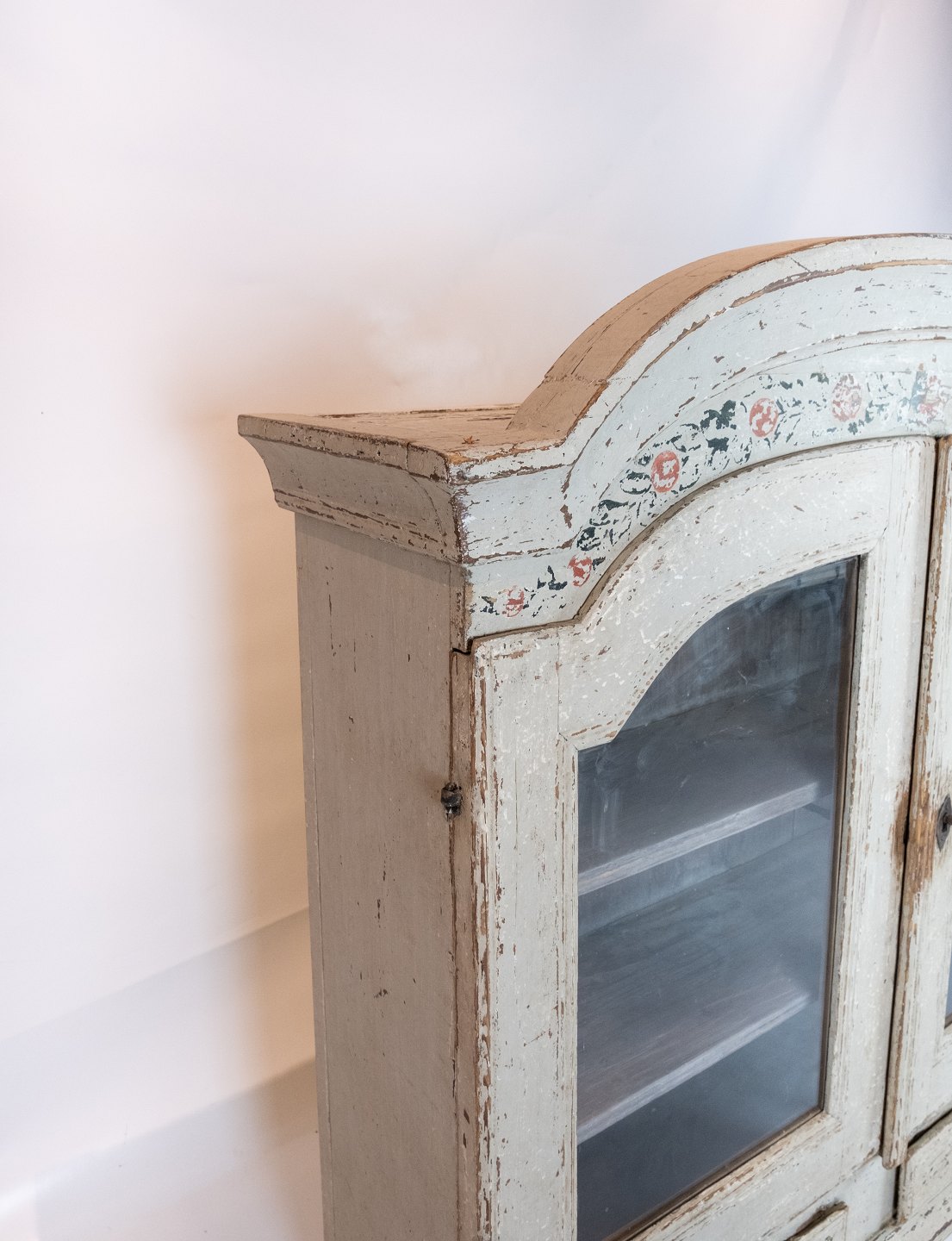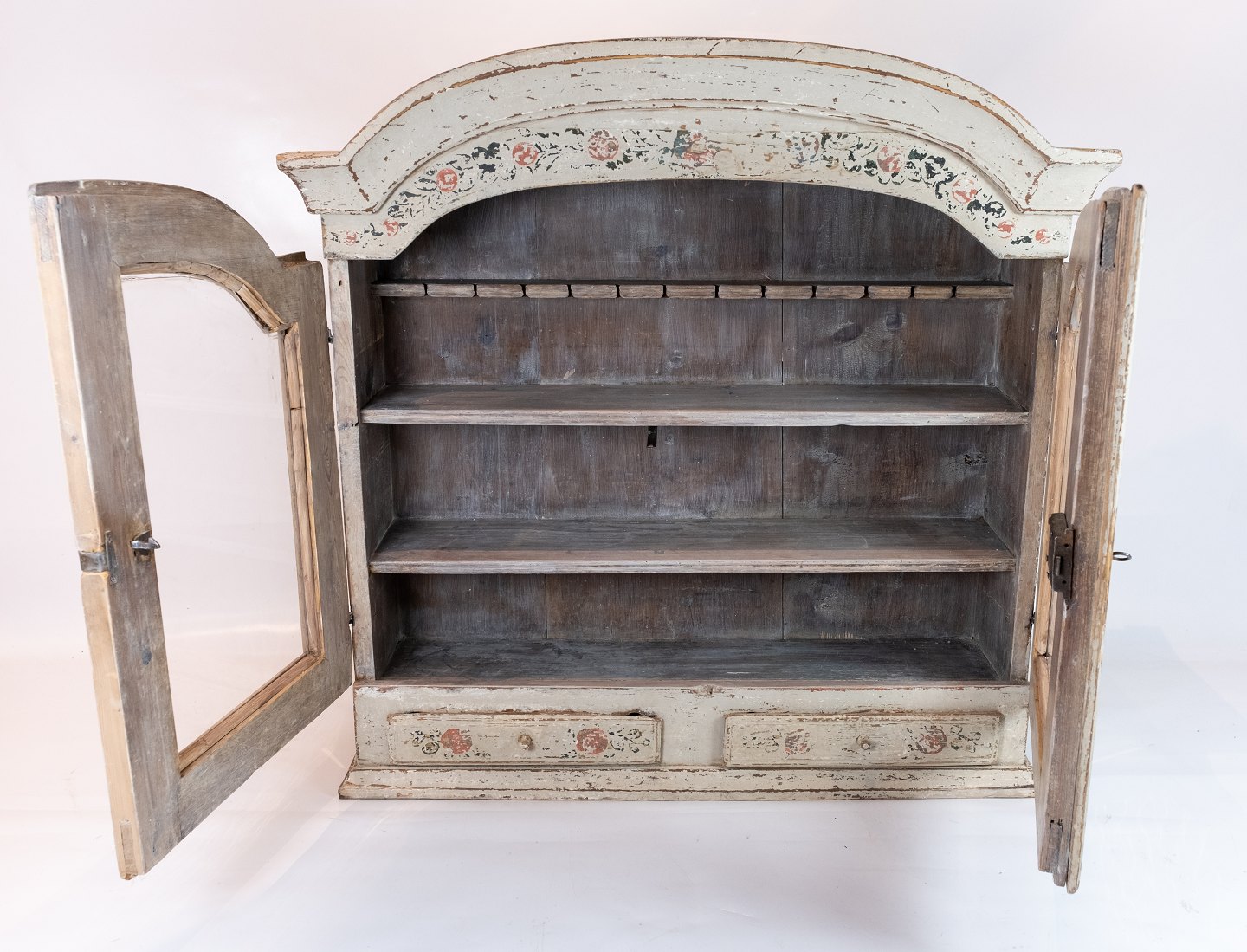 SolgtGråmalet hænge vitrineskab i gustaviansk stil fra omkring 1820. Skabet er i flot brugt stand.