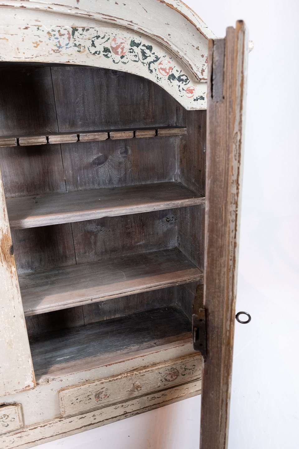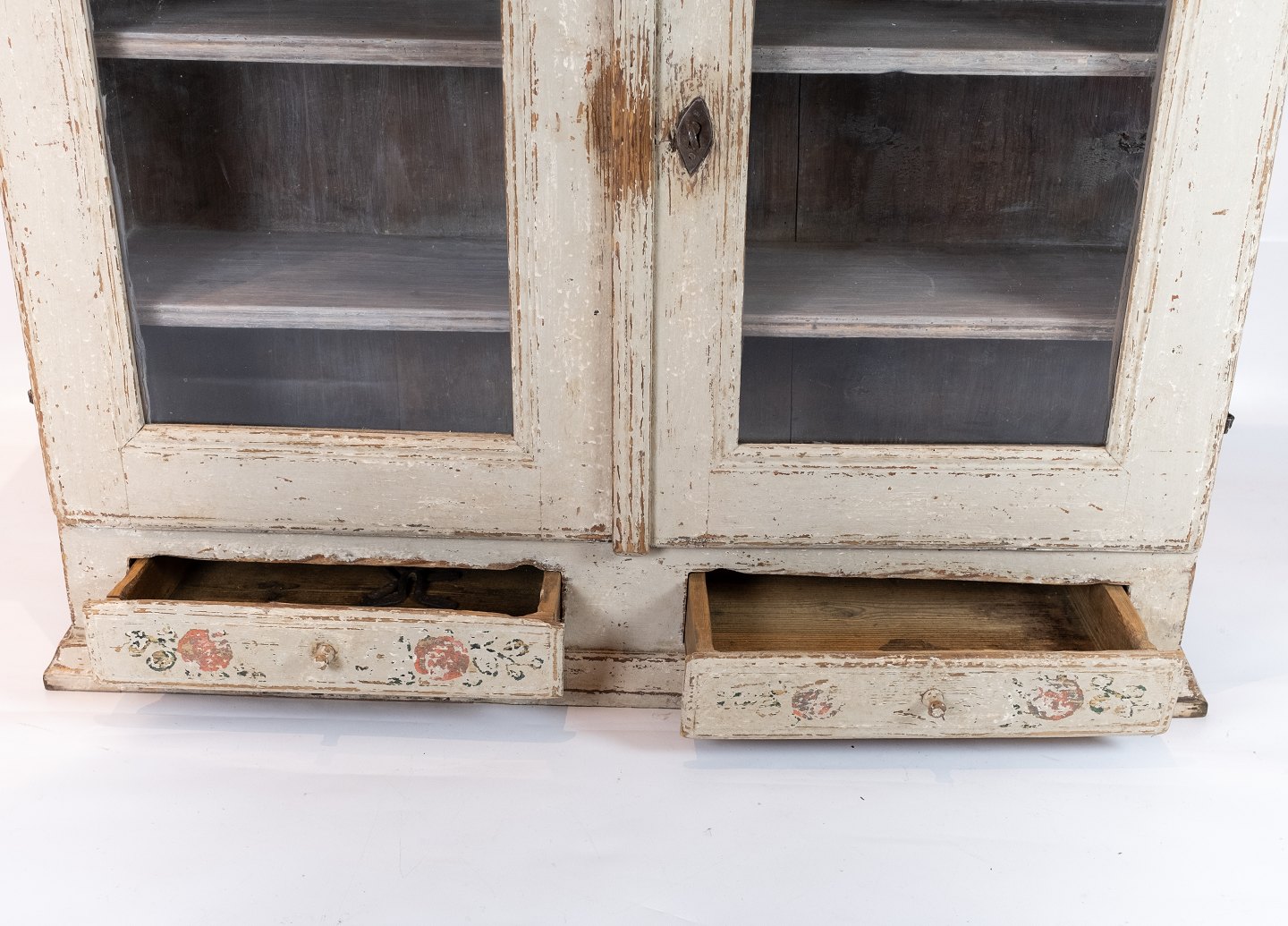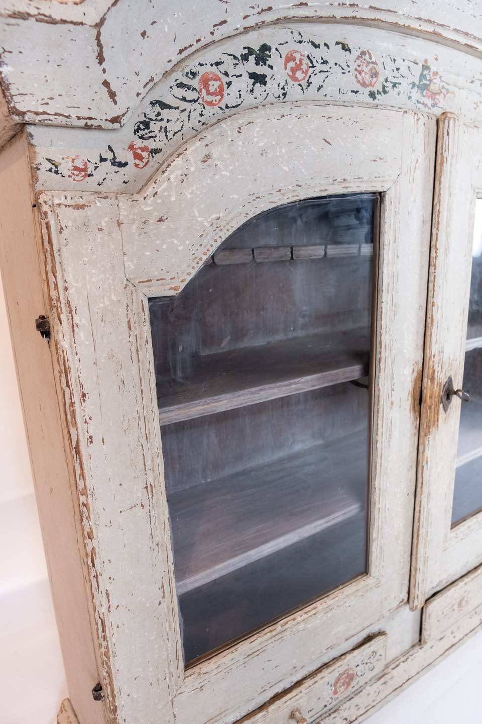 SolgtGråmalet hænge vitrineskab i gustaviansk stil fra omkring 1820. Skabet er i flot brugt stand.