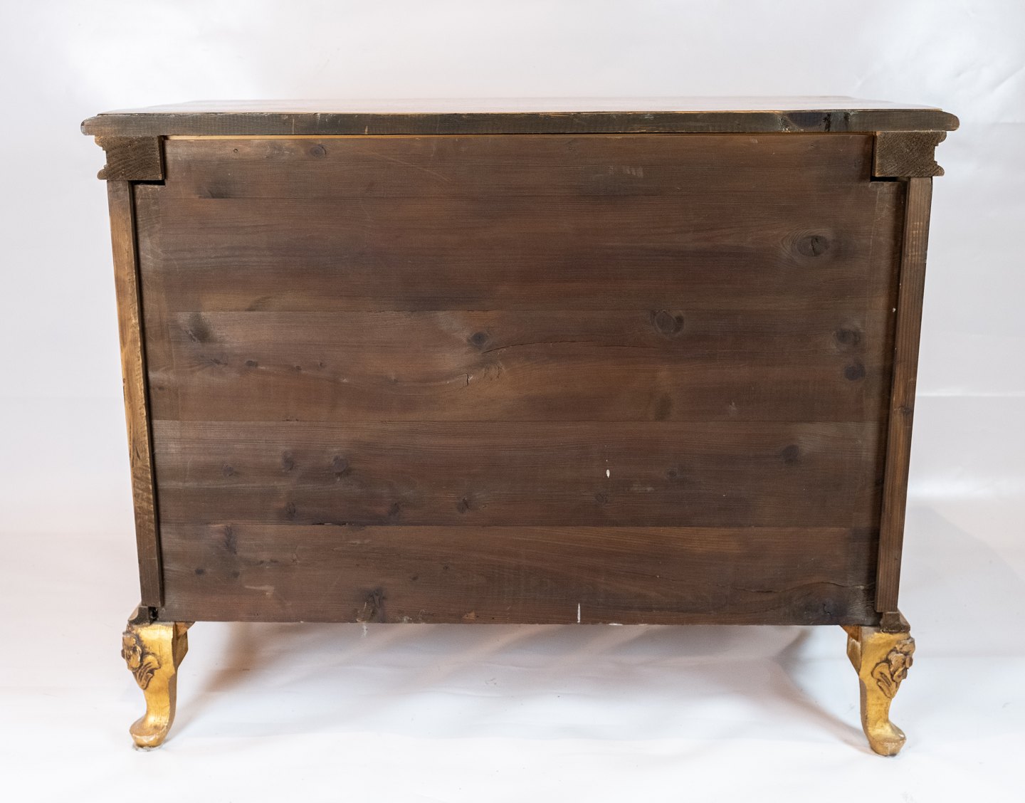 Kontakt os vedrørende prisKommode af poleret valnøddetræ dekoreret med forgyldning og håndtag af messing fra 1860erne. Møblet er i flot brugt stand.
