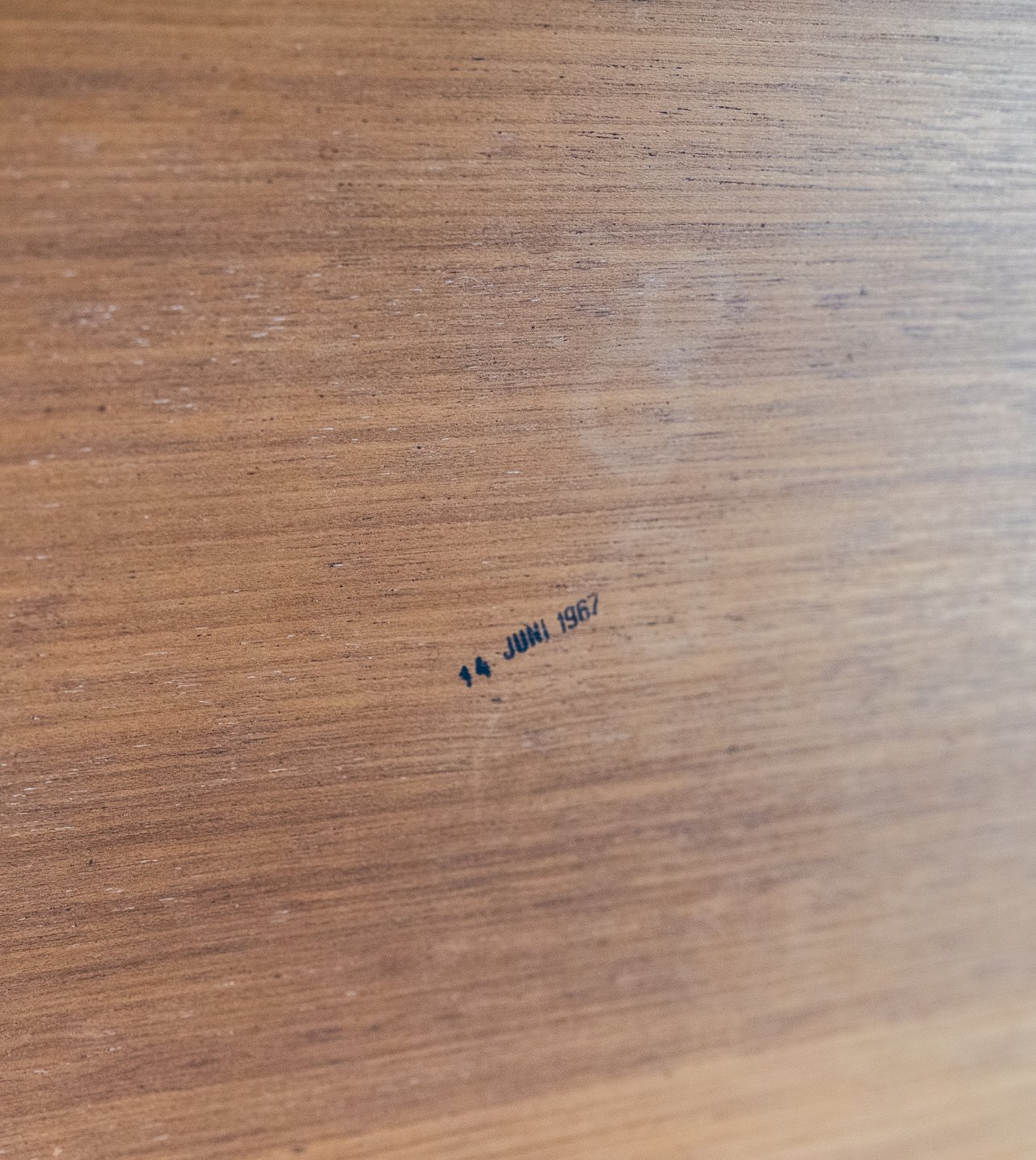 Coffee table in rosewood of danish design manufactured on the 14th of june 1967. The table is in great vintage condition.