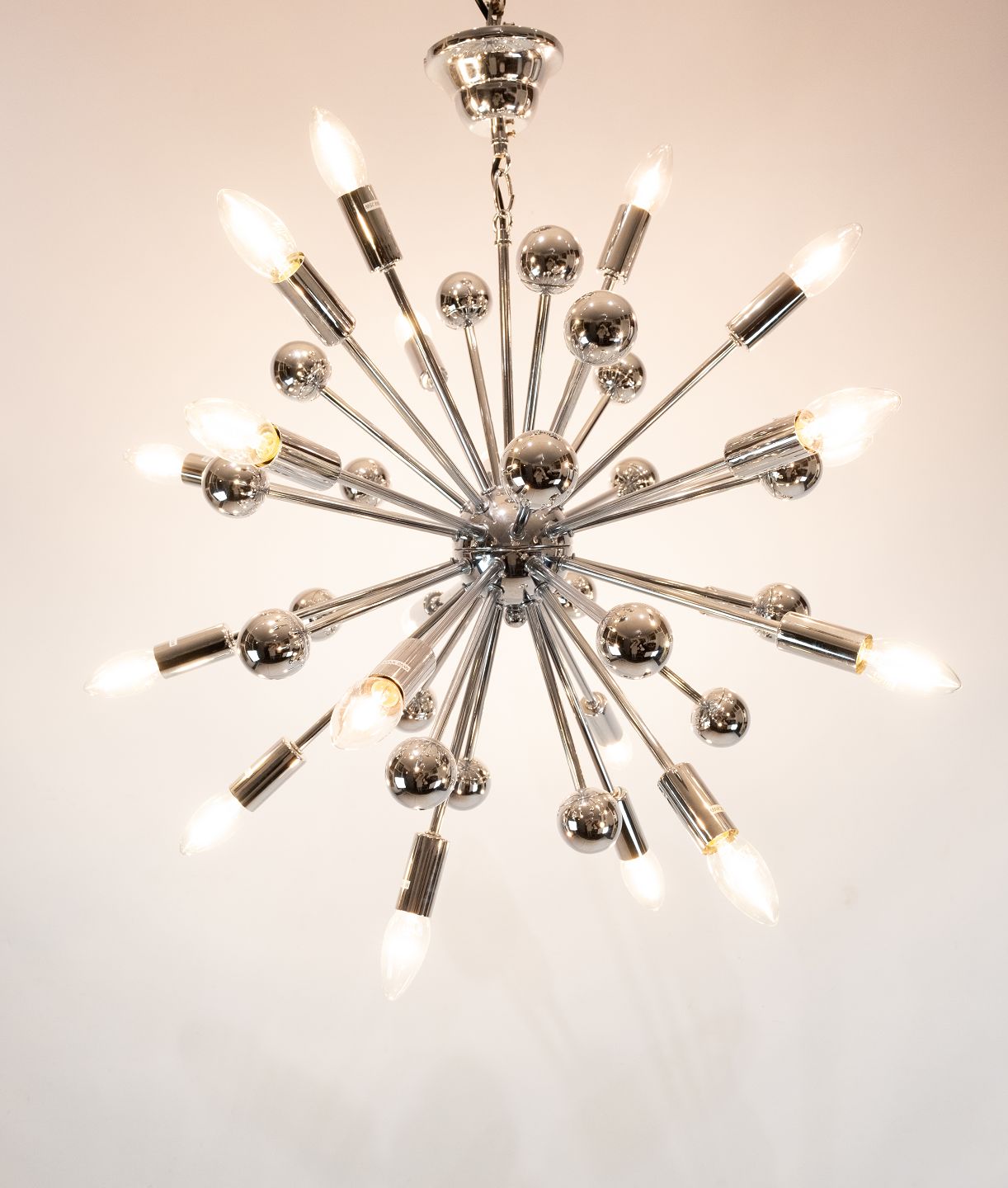 SolgtLoft Sputnik pendel i krom designet af Poul De Haan fra Holland og i flot stand.