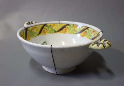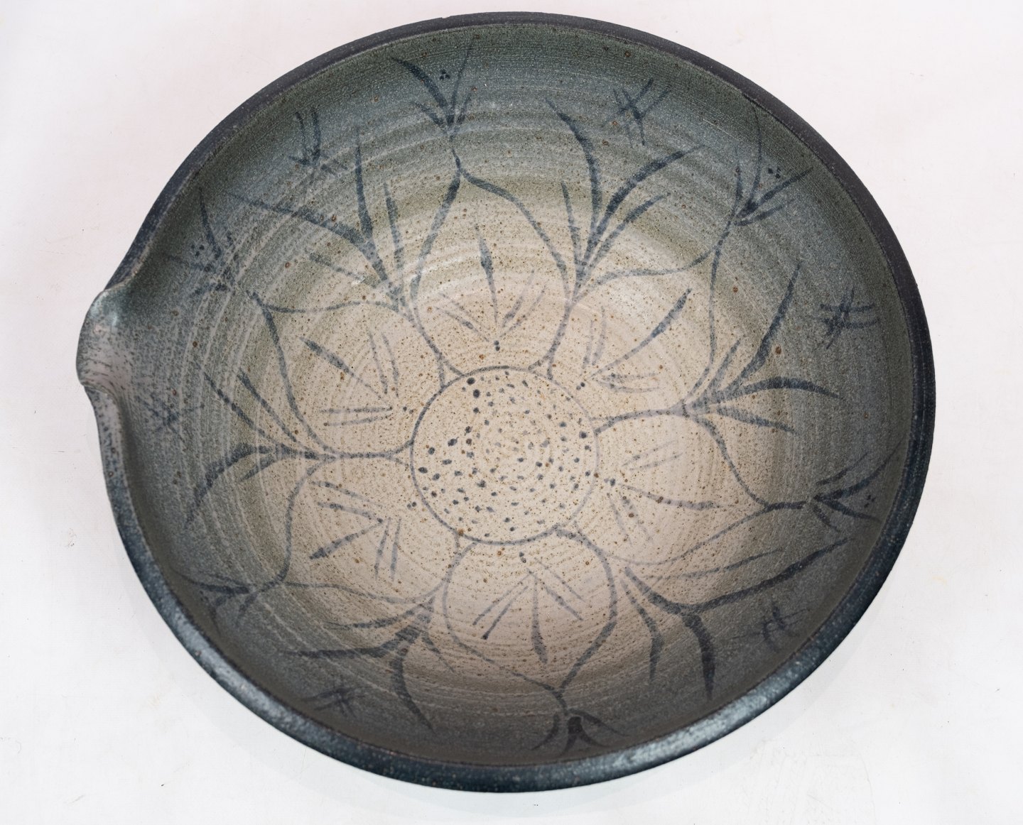Stor grå keramik skål dekoreret med mønster indvendigt af Weiss.