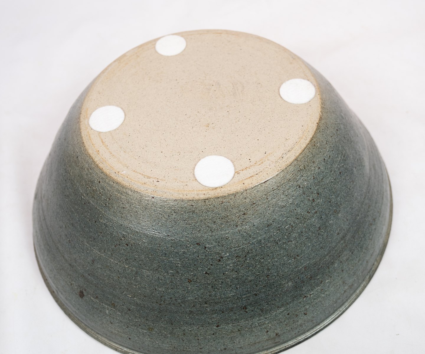 Stor grå keramik skål dekoreret med mønster indvendigt af Weiss. Skålen er i flot brugt stand.