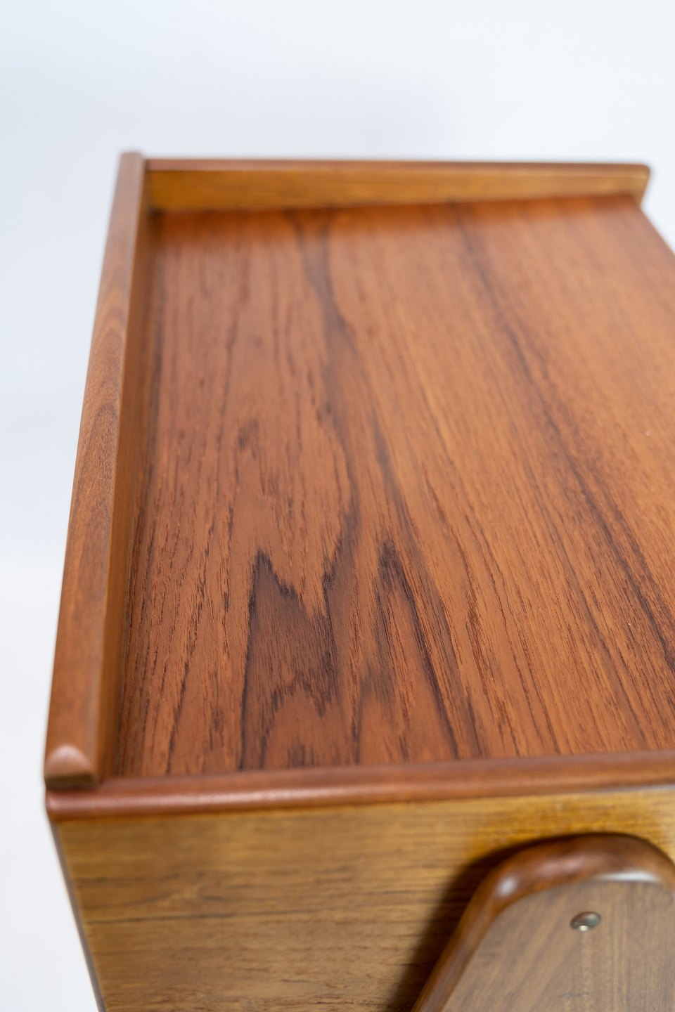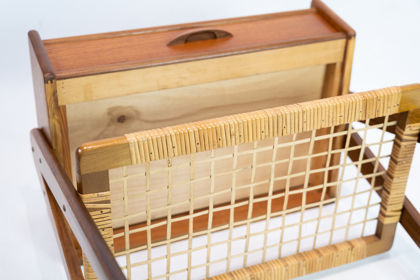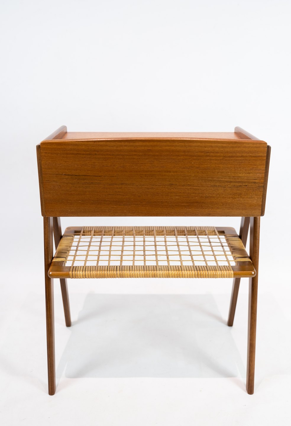 A pair of side tables in teak with paper cord shelf of danish design from the 1960s.