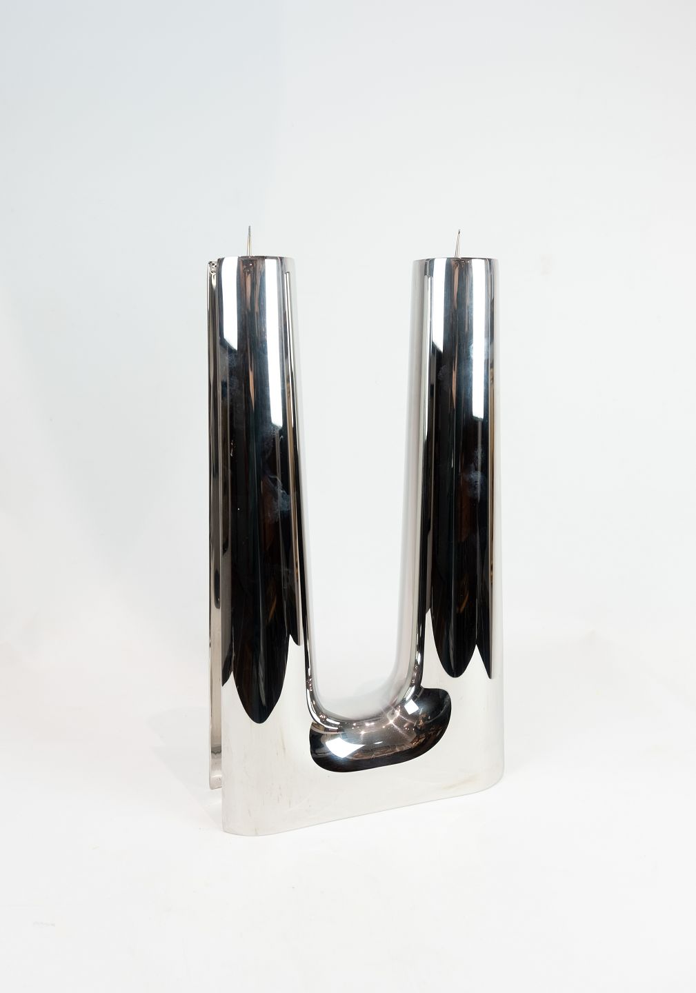 Copenhagen lysestage i rustfrit stål designet af Søren Georg Jensen i 1960erne for Georg Jensen.