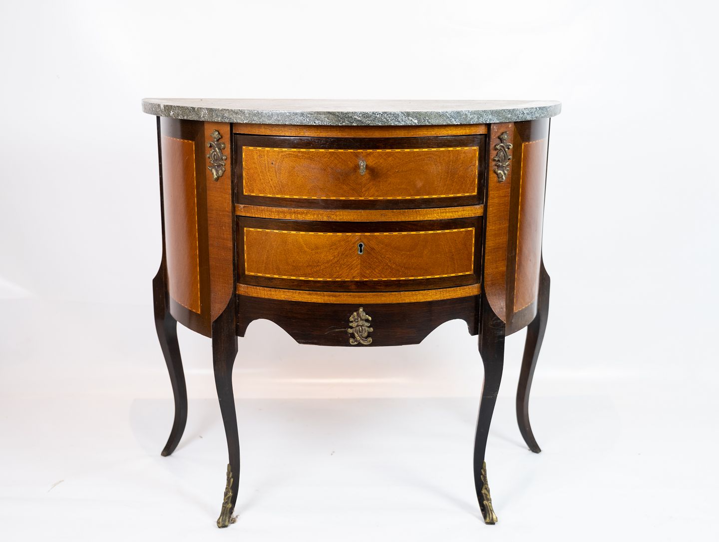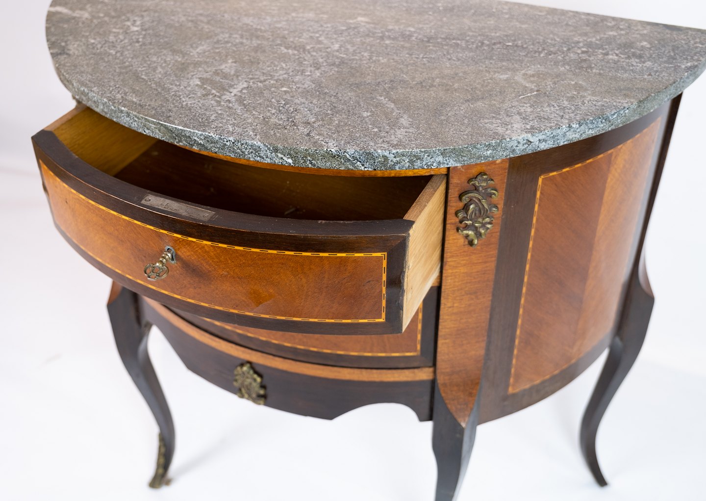 SoldRococo chest of drawers in dark wood with marble table top from the 1920s. The chest is in great antique condition.