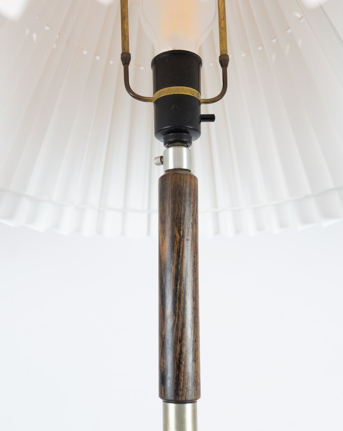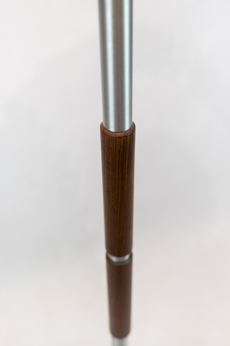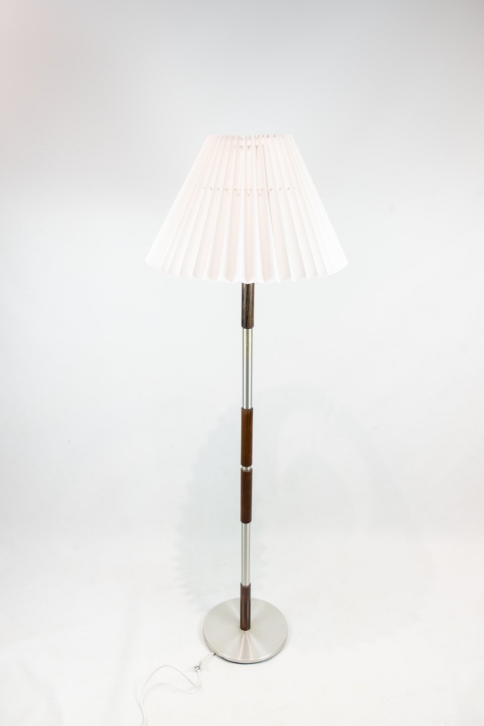 Floor lamp in metal and rosewood of danish design from the 1960s. The shade is hand folded and hand painted in paper.