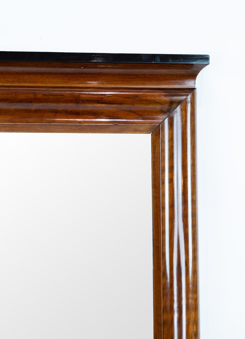 SoldTall mirror with frame of polished mahogany, in great vintage condition.
