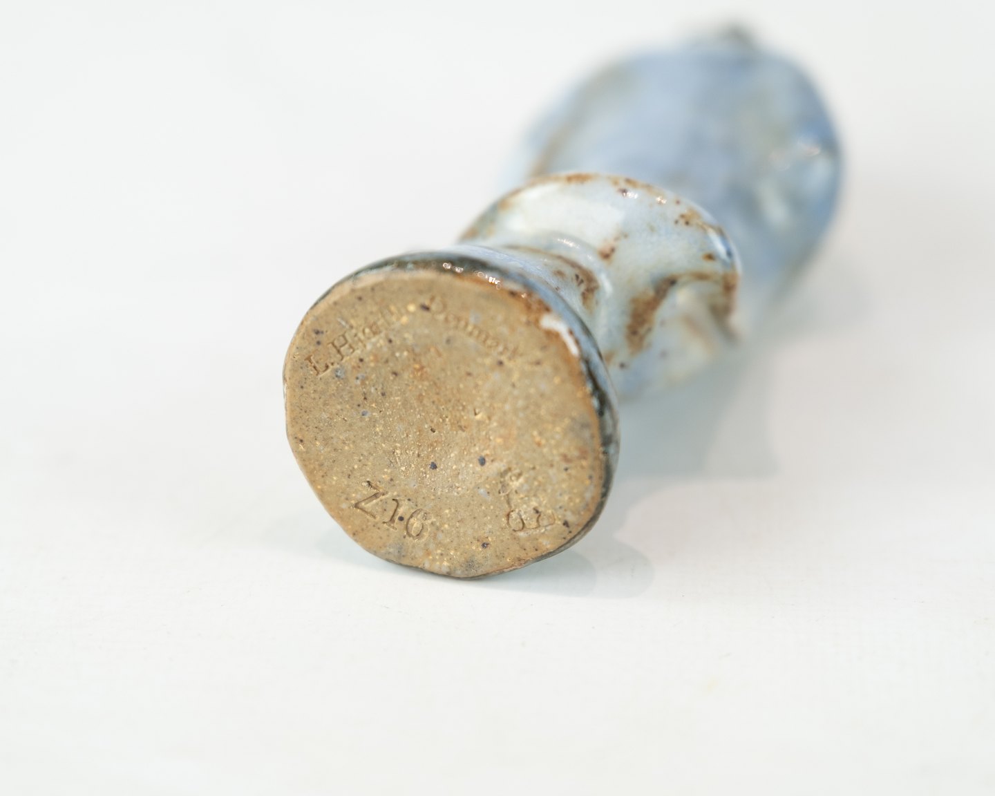 Stoneware figure with light blue glaze by L. Hjorth.