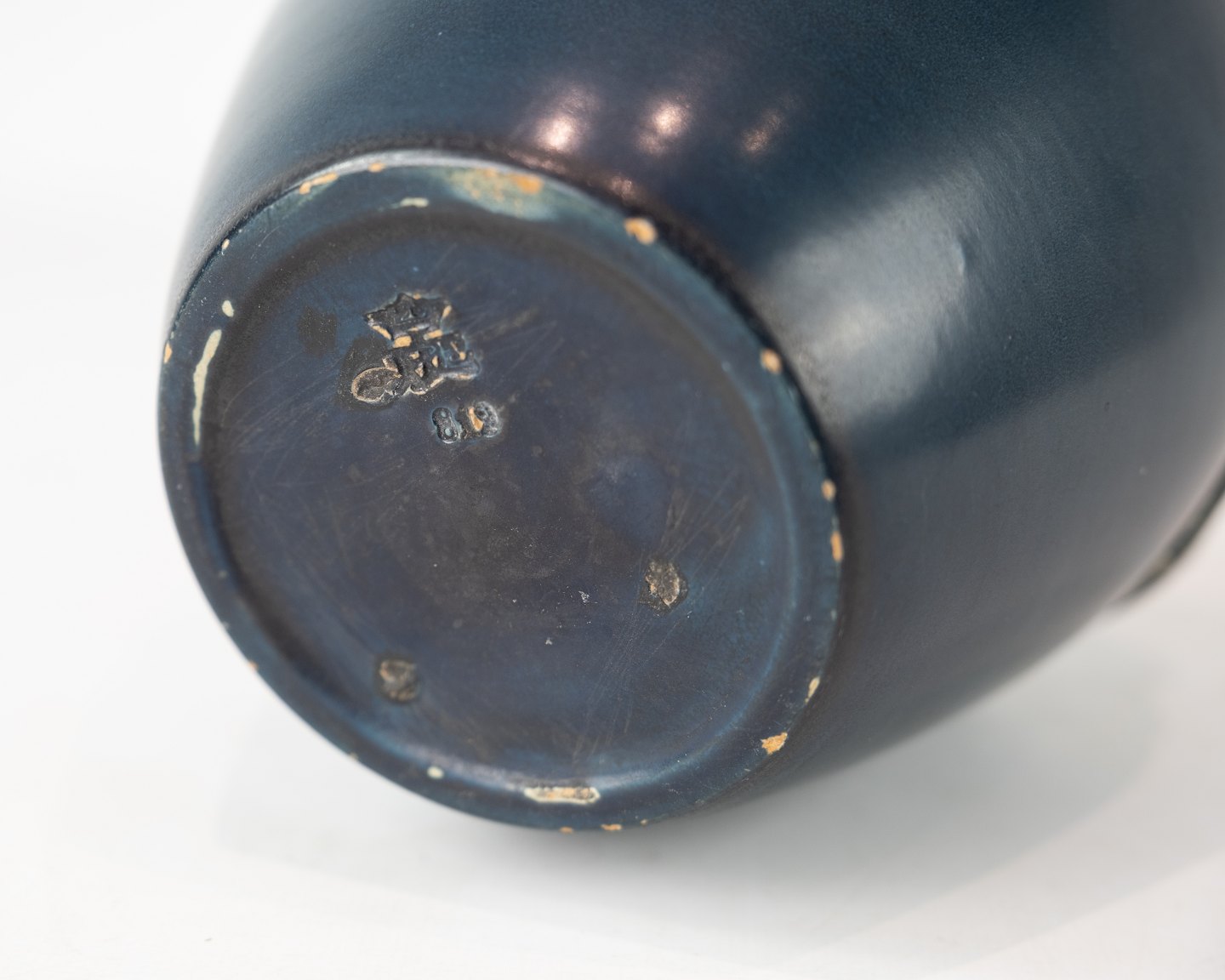 Ceramic vase in dark blue decorated with metal edge by Ibsen Enke.