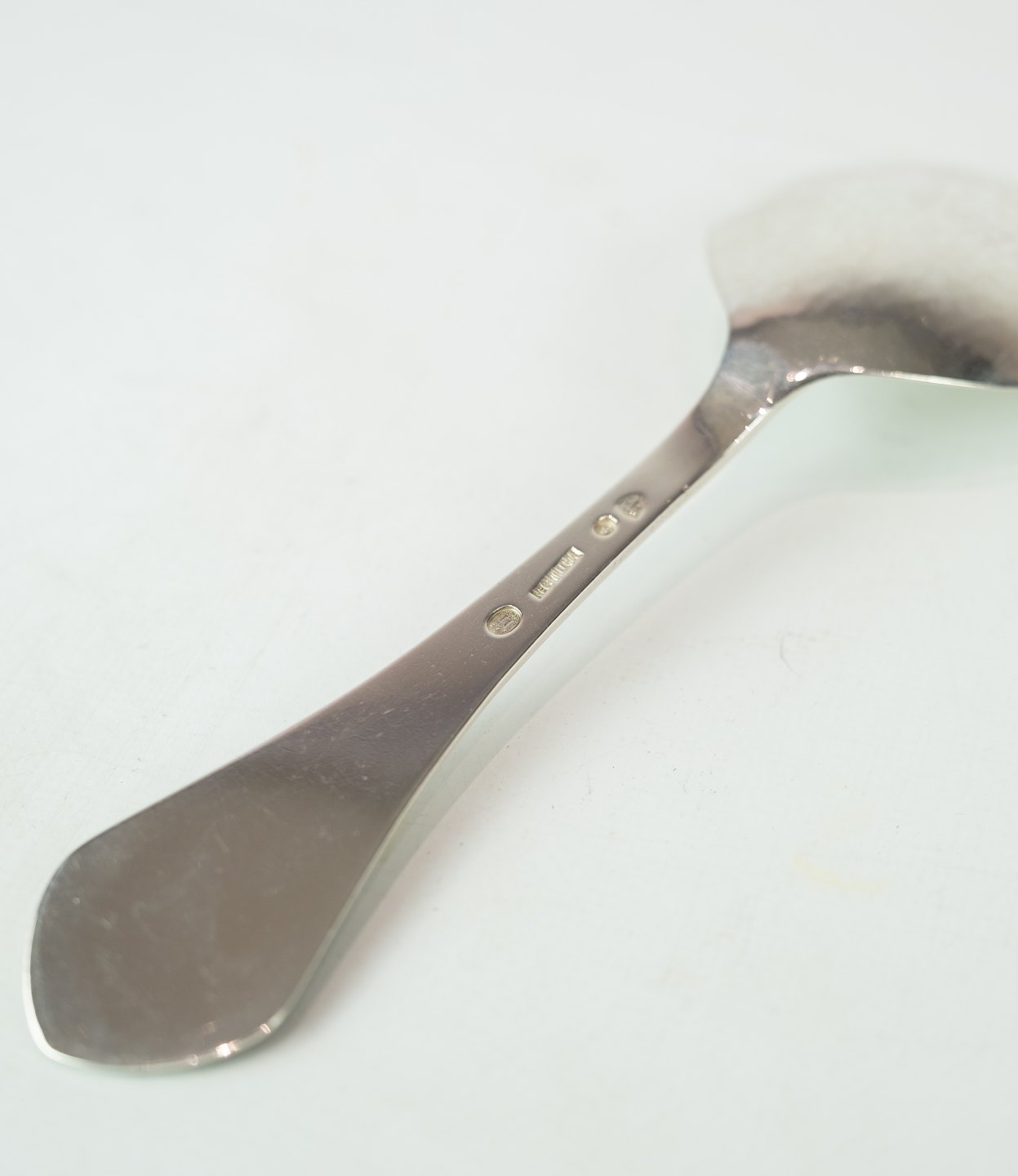 Rund serveringsske dekoreret med druer af tretårnet sølv.