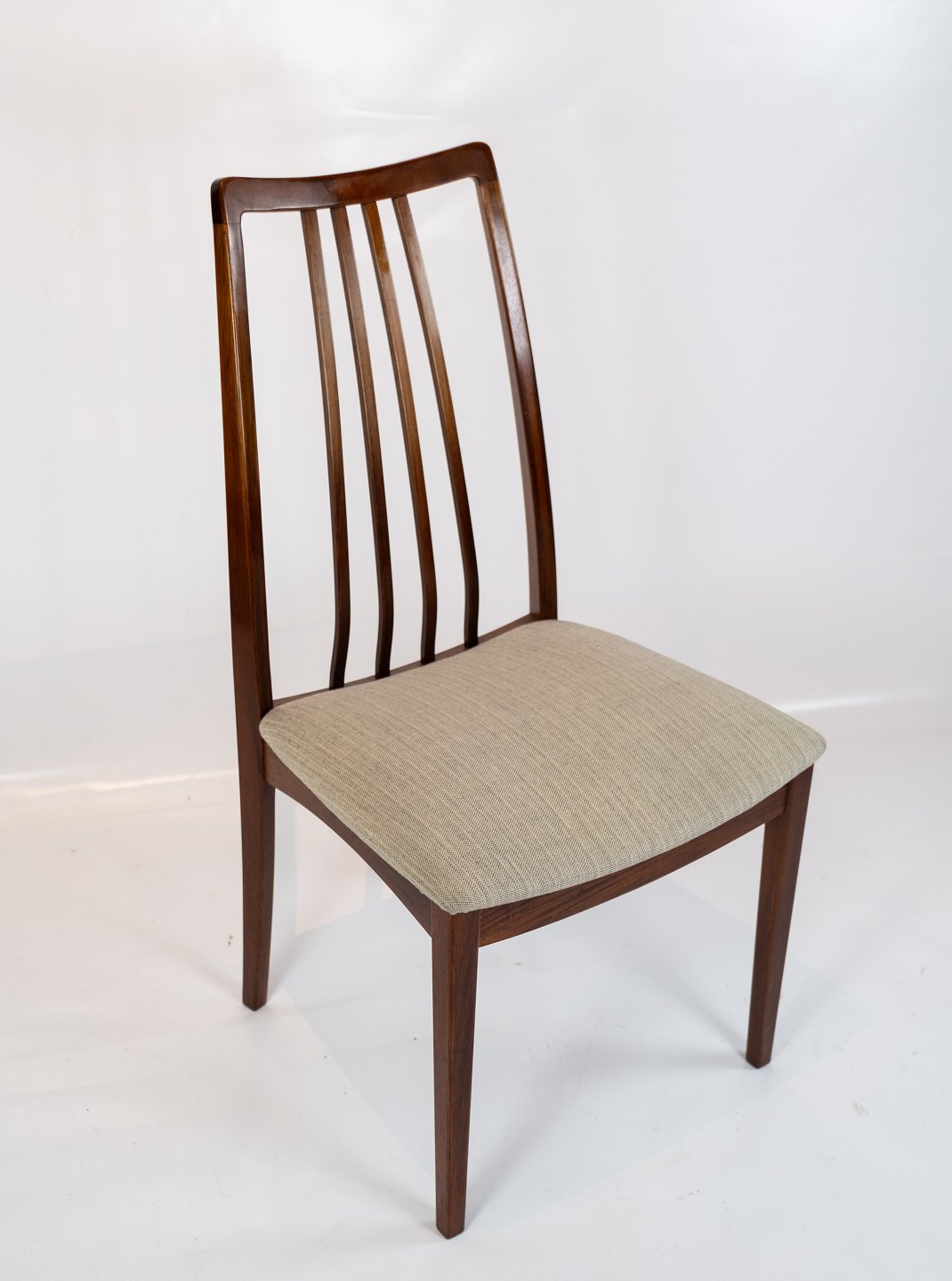 A set of six dining room chairs in rosewood, upholstered with light wool fabric, a beautiful example of Danish design from the 1960s.