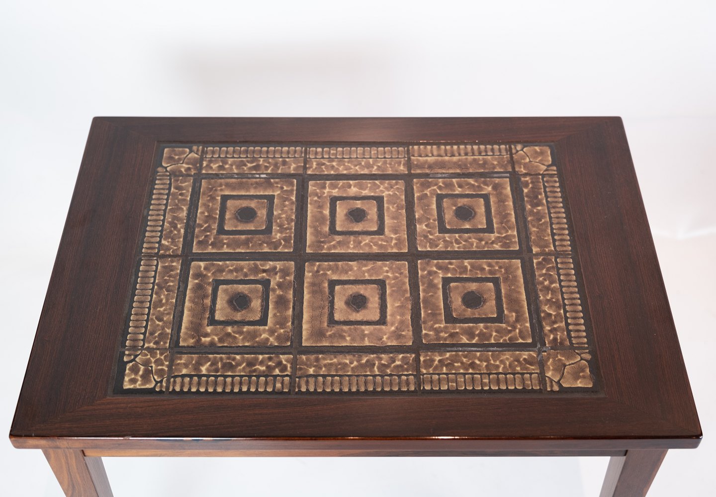 SoldA pair of bedside tables in mahogany with brown tiles of danish design from the 1960s. The tables are in great vintage condition.