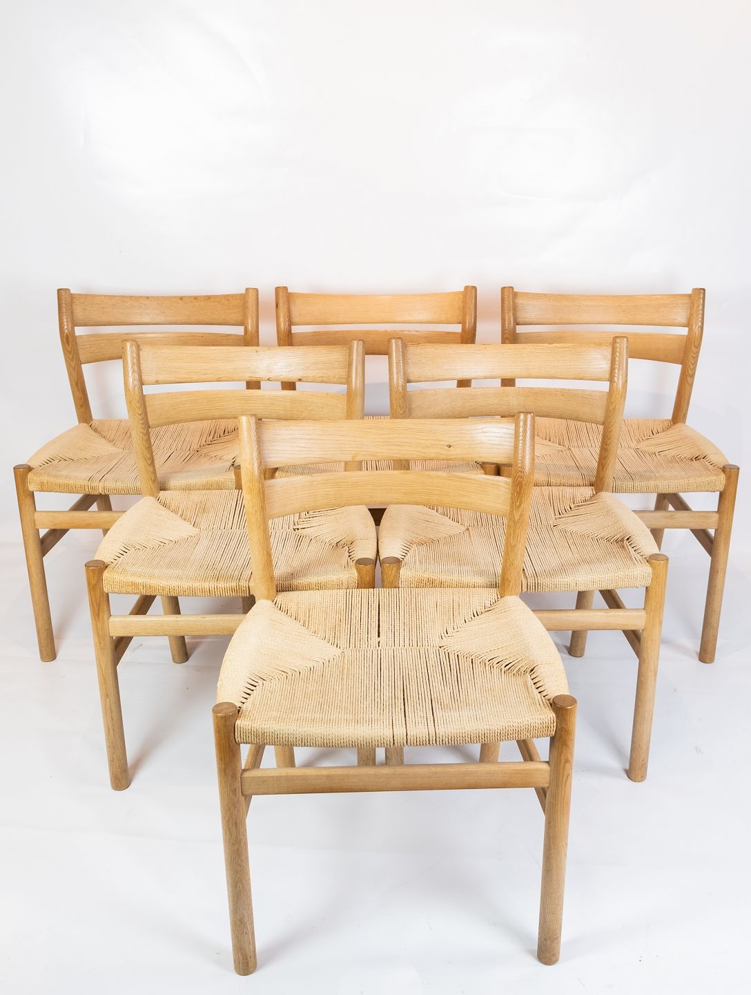 SoldSet of six dining room chairs, model BM1, of oak and paper cord, designed by Børge Mogensen from the 1960s. The chairs are in great vintage condition.