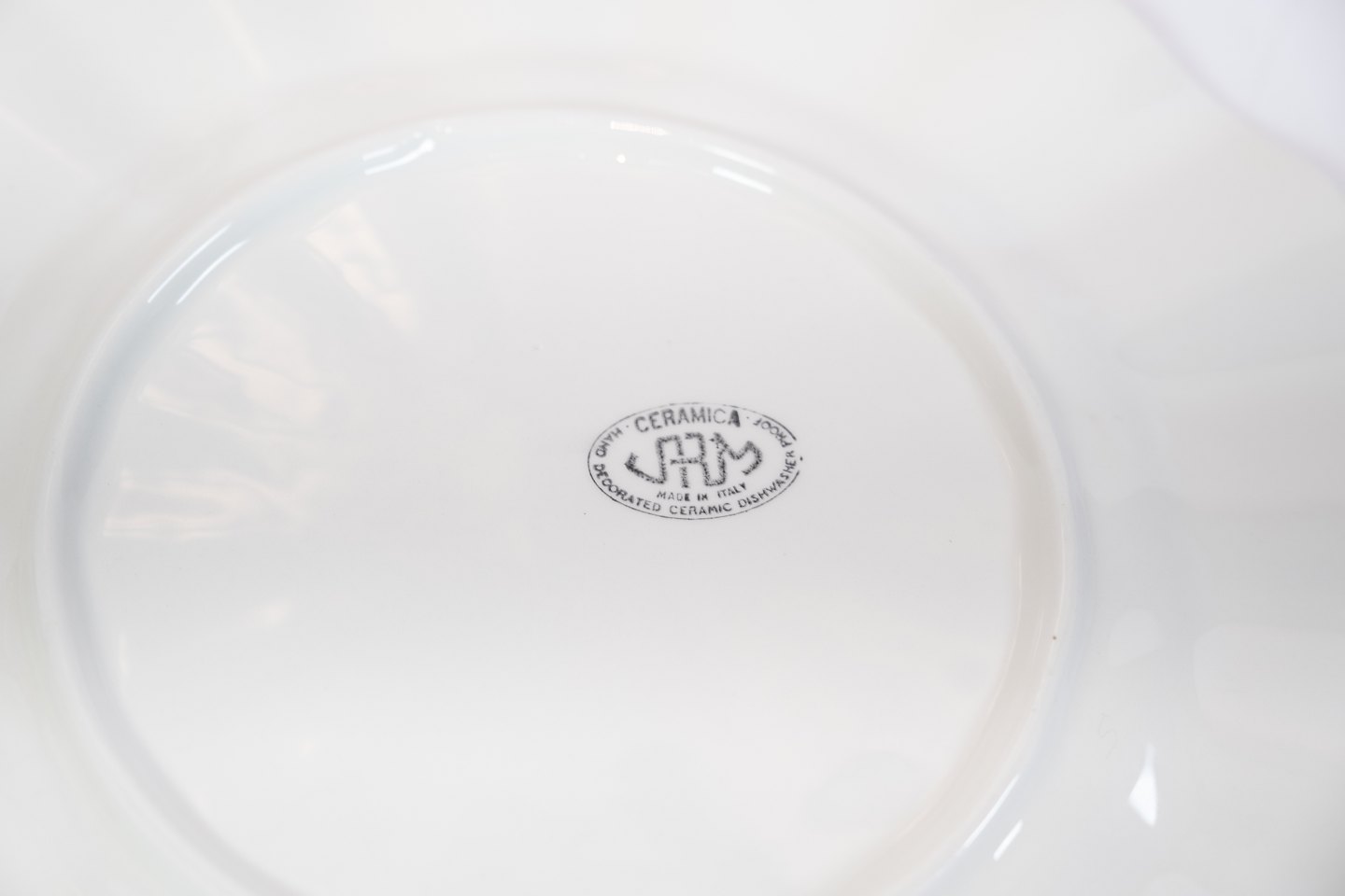 Middagstallerken i lyse farver af italiensk porcelæn.