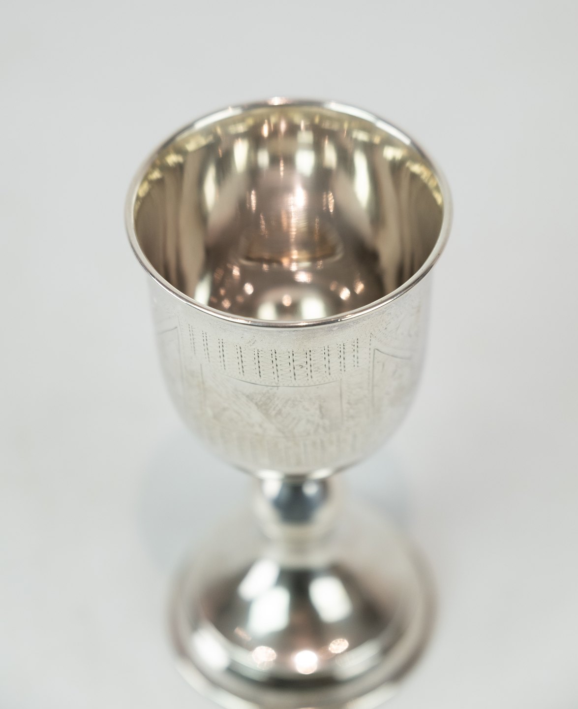 Drikkebæger med ciseleringer af tretårnet sølv fra 1930erne.
