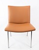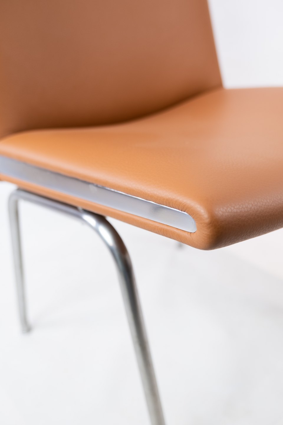 Wegner's design for the CH401 lounge chair demonstrates a mastery of minimalist aesthetics. The chair's simple tubular-steel frame challenges the notion that upholstered furniture must be large or bulky. Wegner ingeniously concealed the mechanisms for attaching the upholstered fabric to the frame with a slender, angled element made of stainless steel, resulting in a clean and uncluttered appearance.