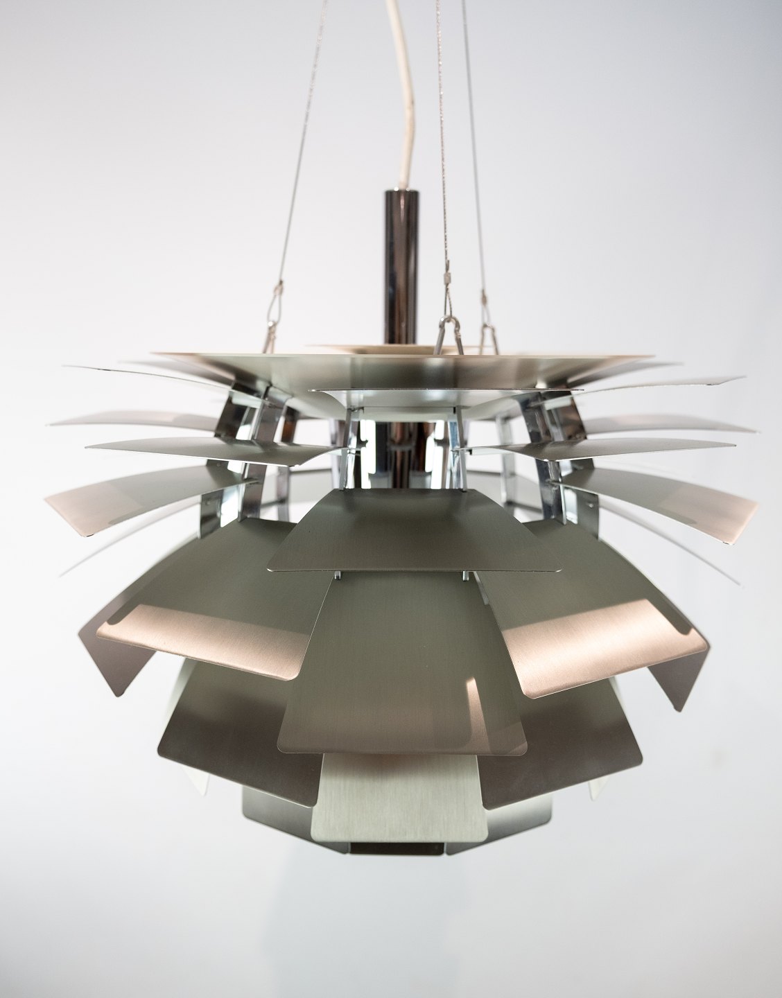 SoldThe Artichoke is made of brushed steel. Designed by Poul Henningsen in 1958 and manufactured by Louis Poulsen. The Artichoke lamp is known for its unique, sculptural design, which ensures soft and pleasant lighting.