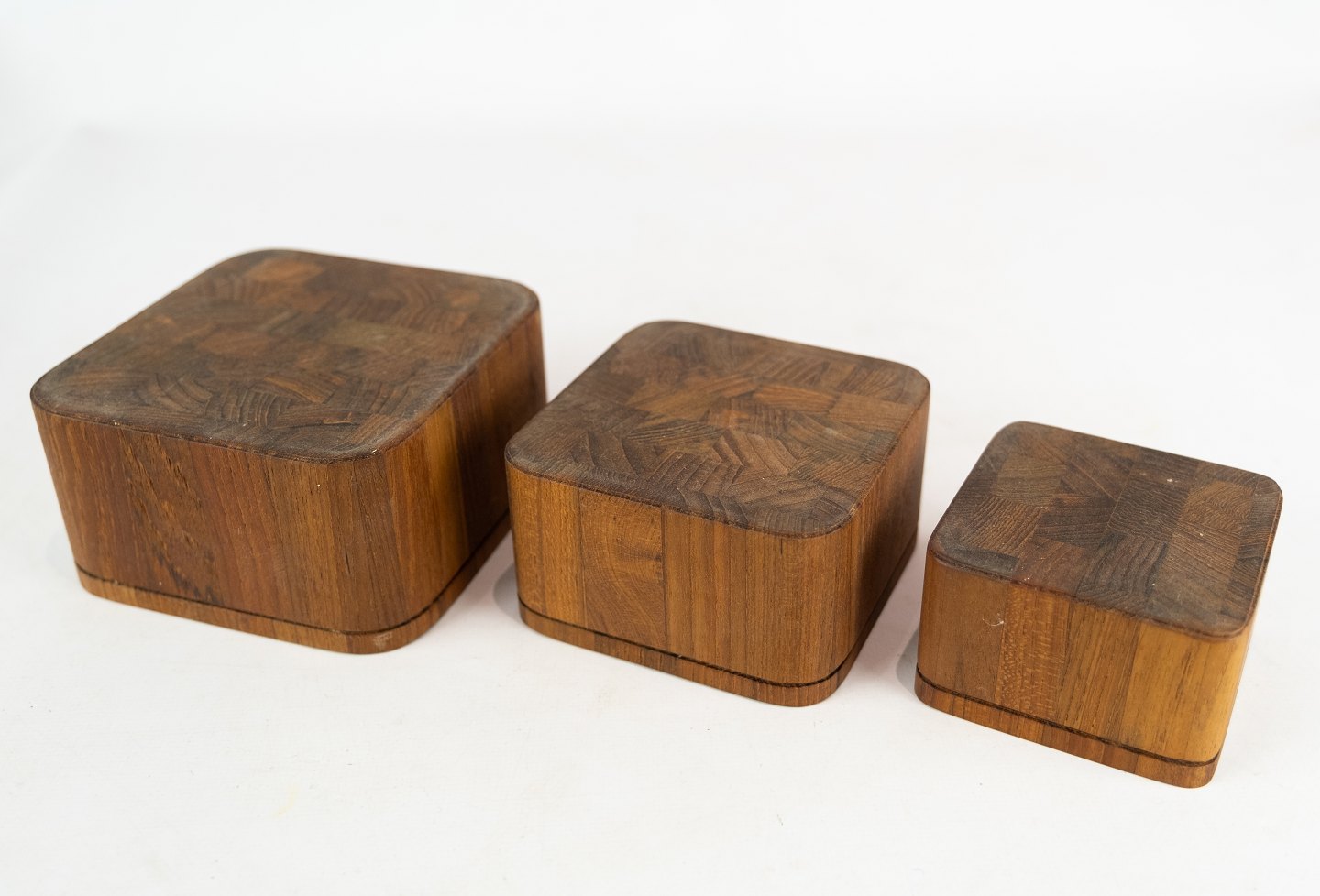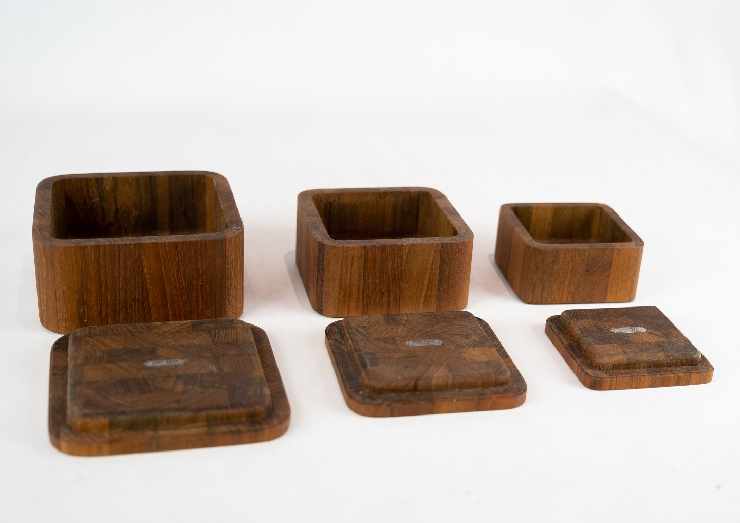 SoldSet of three Dania Boxes of teak by Trip Trap. All are in great used condition.