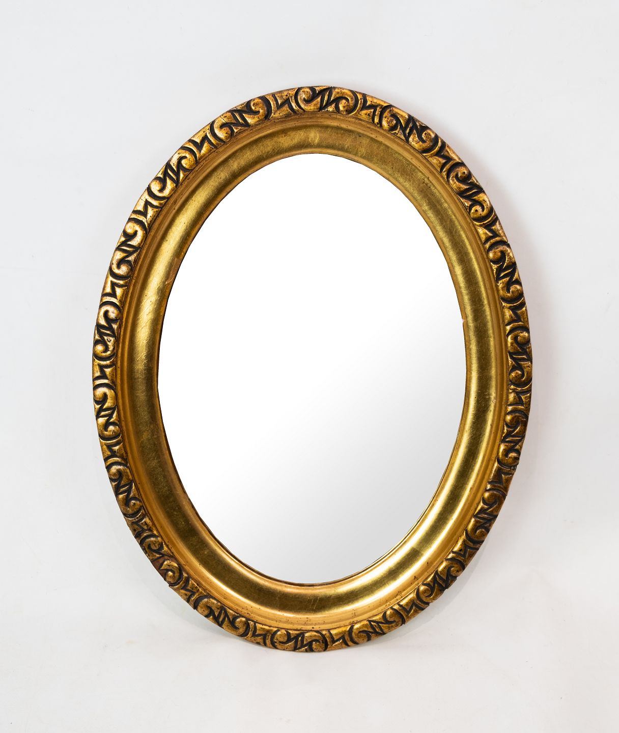 SoldOvale mirror with gilded frame, in great antique condition from the 1890s.