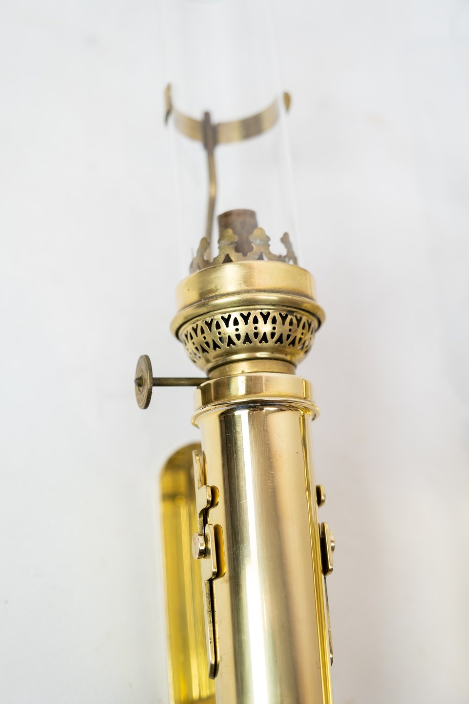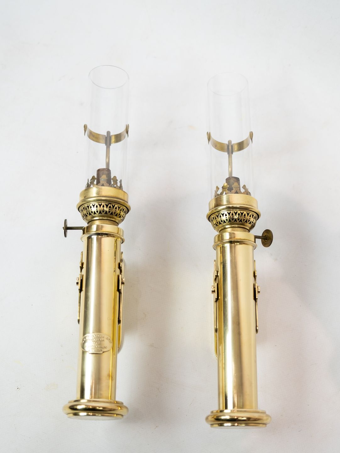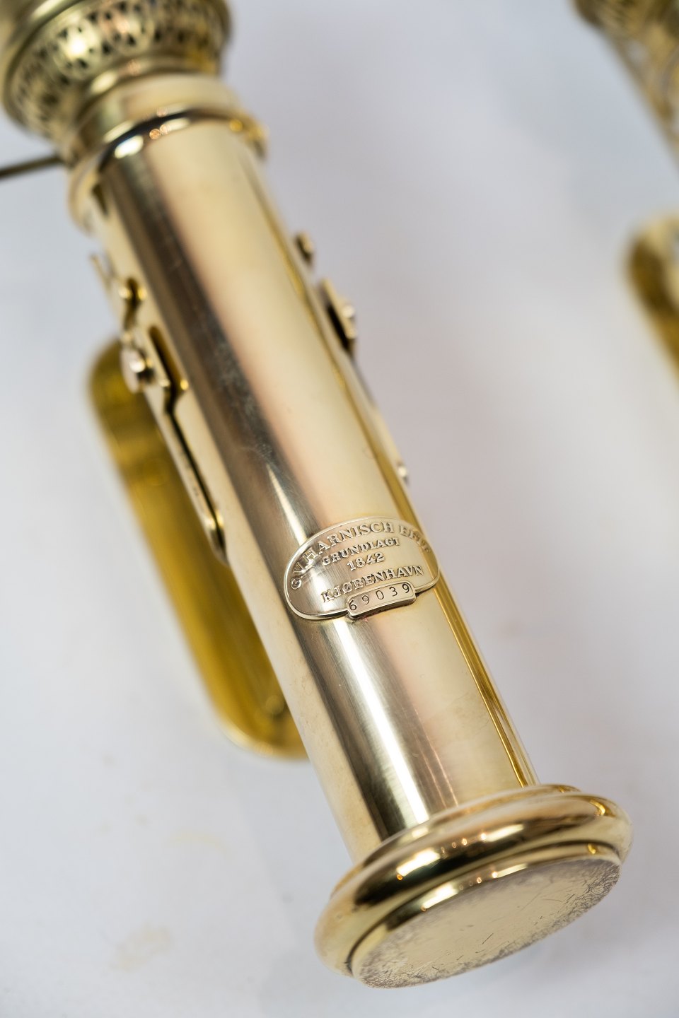 A set of wall candlesticks in brass by G.V. Harnisch EFTF founded in Copenhagen in 1842.