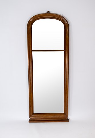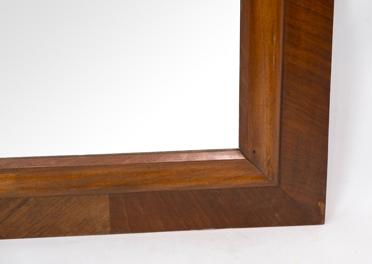Spejl i nøddetræ af dansk design fra 1920erne. Spejlet er i flot brugt stand.