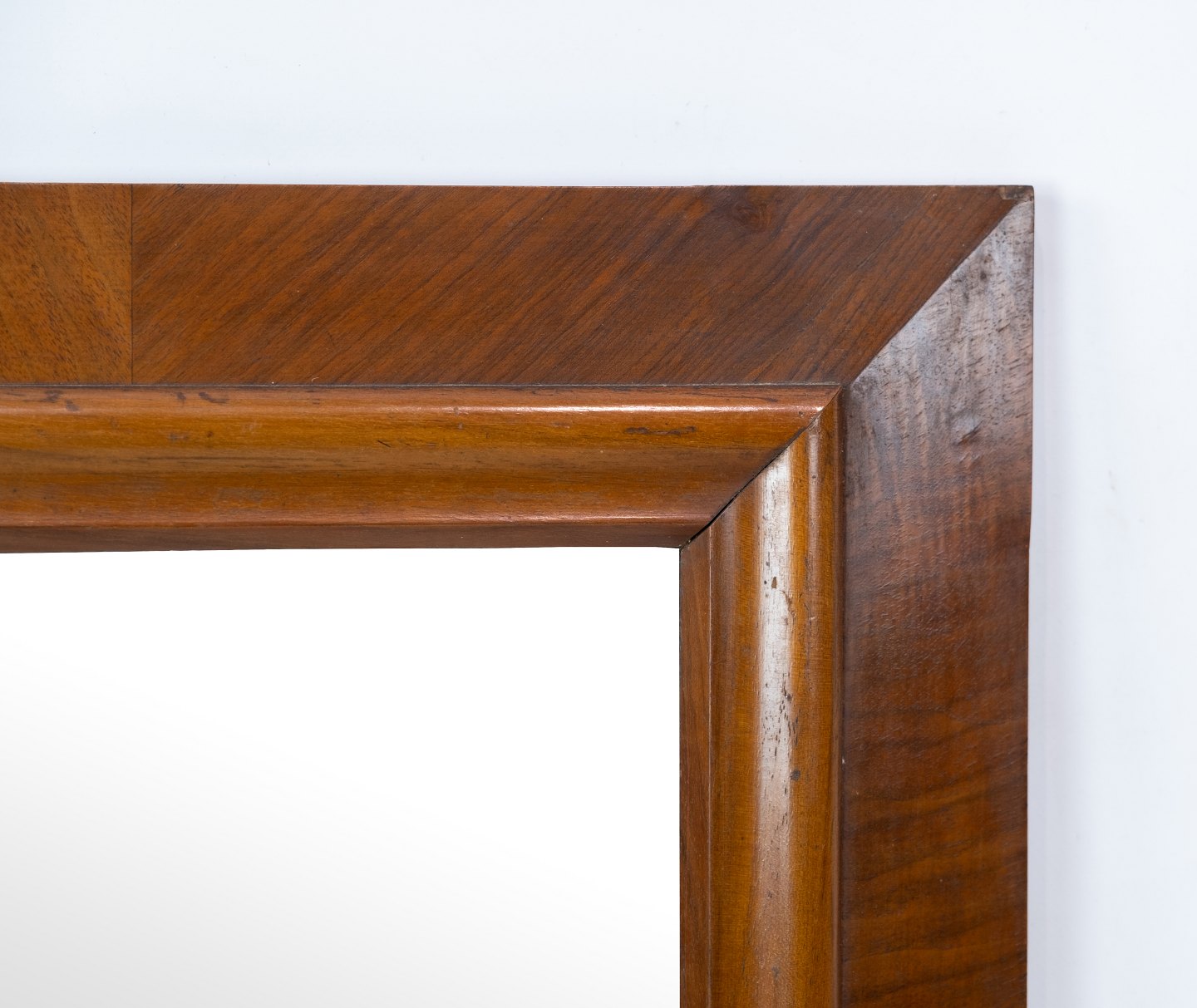 Spejl i nøddetræ af dansk design fra 1920erne.
